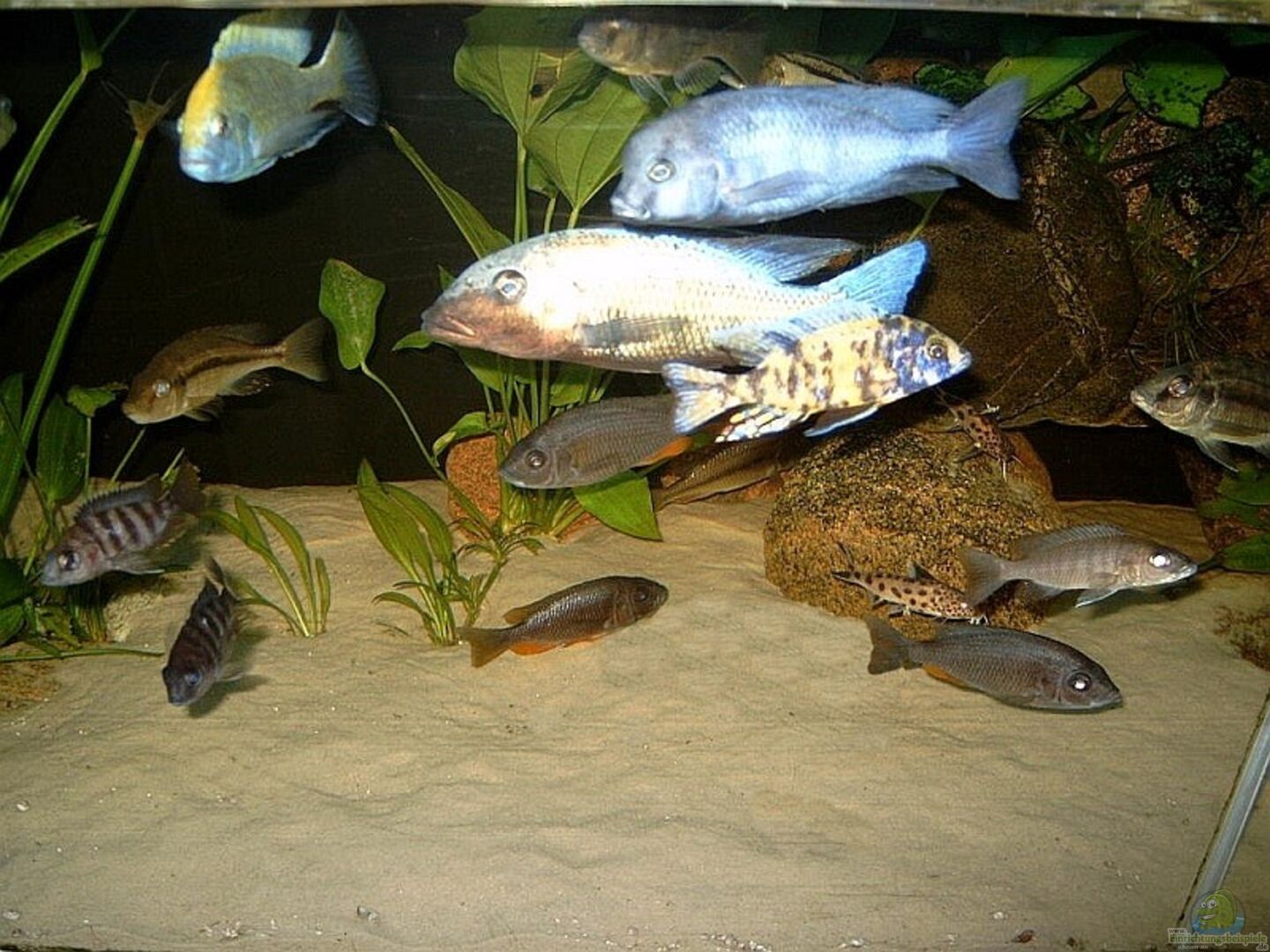Sehr gro??e Flusssteine ergeben Höhlen, wo sich bedrängte Tiere und bruttragende Weibchen zurückziehen können. Die Rückwand habe ich mit schwarzen Aquariensilicon überspachtelt. Dadurch verschwinden gleich die hässlichen Kratzer und es wirkt optisch gut. Man kann ohne Gefahr Steine anlegen. Freie Sandflächen bieten genügend Schwimmraum. Da Malawis Laichgruben anlegen und deshalb die spiegelnde Bodenscheibe zusehen wäre, habe ich sie wie folgt gestaltet. Zuerst wurde die Bodenscheibe [...]