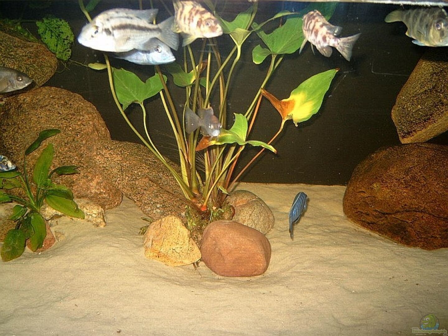 Sehr gro??e Flusssteine ergeben Höhlen, wo sich bedrängte Tiere und bruttragende Weibchen zurückziehen können. Die Rückwand habe ich mit schwarzen Aquariensilicon überspachtelt. Dadurch verschwinden gleich die hässlichen Kratzer und es wirkt optisch gut. Man kann ohne Gefahr Steine anlegen. Freie Sandflächen bieten genügend Schwimmraum. Da Malawis Laichgruben anlegen und deshalb die spiegelnde Bodenscheibe zusehen wäre, habe ich sie wie folgt gestaltet. Zuerst wurde die Bodenscheibe [...]