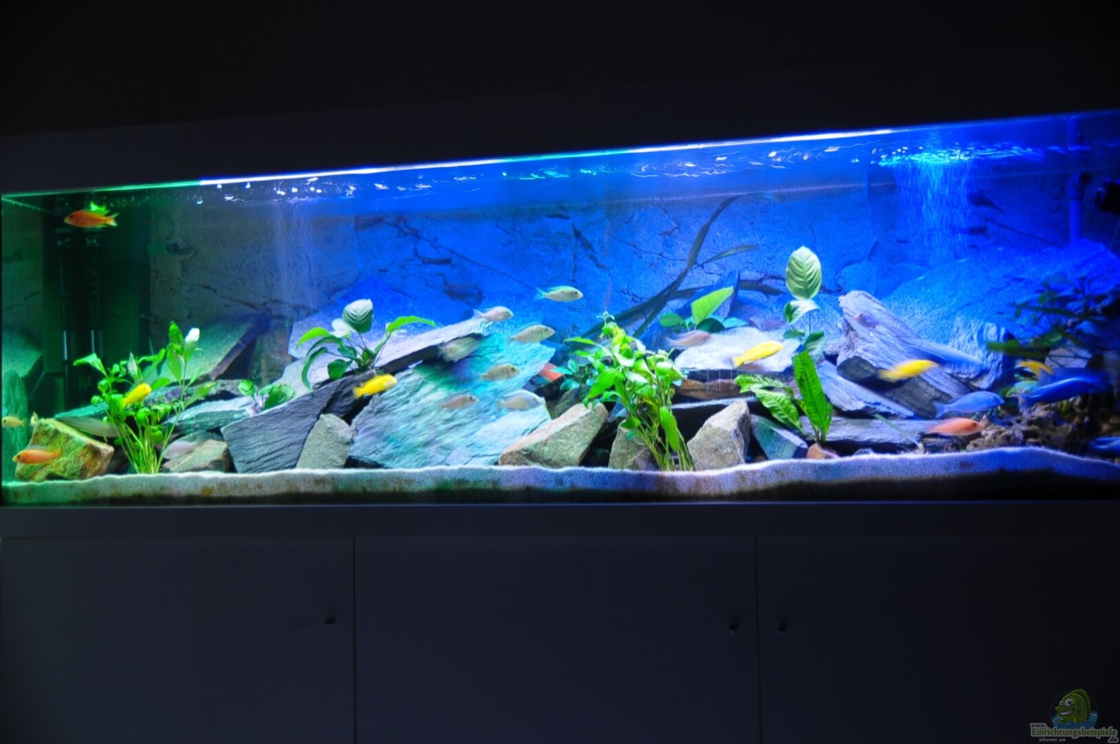 Beleuchtung : 2 T8 Röhren, die vordere Röhre ist eine Aqua-Glo der Firma Hagen.Die hintere Röhre ebenfalls.Beide Röhren sind mit Alufolie abgedunkelt und zum Teil mit blauer und grüner Folie umwickelt.Beide Röhren haben 36 watt. Aquarium: 12mm Sicherheitsverglasung sowie Verklebung. Bodenbereich 2 Bohrungen für Pumpensystem. Bodenplatte habe ich eine 20mm Styrodurplatte eingelegt für den Steinaufbau Da wir gerade ein Haus gekauft haben, wollten wir es dem Wohnzimmer anpassen. Wei?? [...]