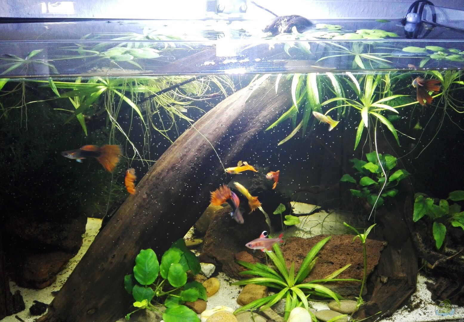 Standard 54 Liter Becken von Dehner "Aquarium Set Scout" inkl. Beleuchtung, Innenfilter und Heizstab. Aufgebaut ist das Becken im Flur auf ein Kallax Regal von Ikea. Die Abdeckung habe ich am 12.02.2020 entfernt. Die vorhandene Beleuchtung habe ich dann durch eine LED Lampe ersetzt (siehe Thema Beleuchtung). Die Seitenwände und die Rückwand des Beckens sind mit schwarzen Pappkarton verklebt. Die Wand über dem Aquarium habe ich mit Pflanzmatten (künstlich) von Ikea verkleidet. [...]
