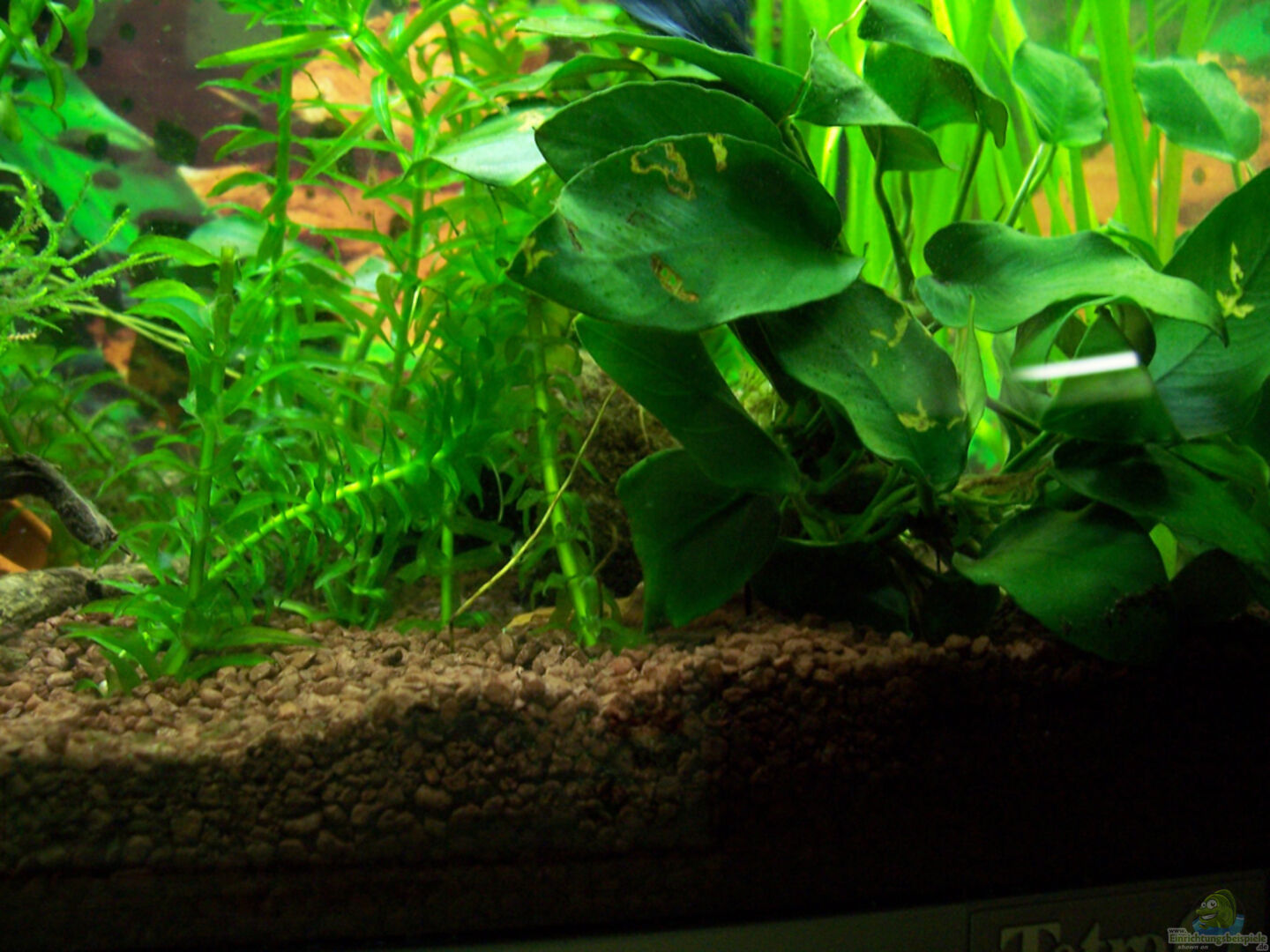 Wasserpest (Egeria densa) -> Vorrangig links vorn im Becken, rechts hinten, zudem als Schwimmpflanzen kreuz &. quer im mittleren und oberen Bereich des Beckens. Breitblättriges Speerblatt (Anubias barteri var. barteri) -> Vorrangig vorn rechts und hinten in der Mitte zu finden. Wasserschraube (Vallisneria spiralis) -> Befindet sich im hinteren und vorderen Bereich der rechten Seite im Becken. Javamoos / Bogormoos (Taxiphyllum barbieri (Vesicularia)) -> Zu finden auf einem Ast im Aquarium, [...]
