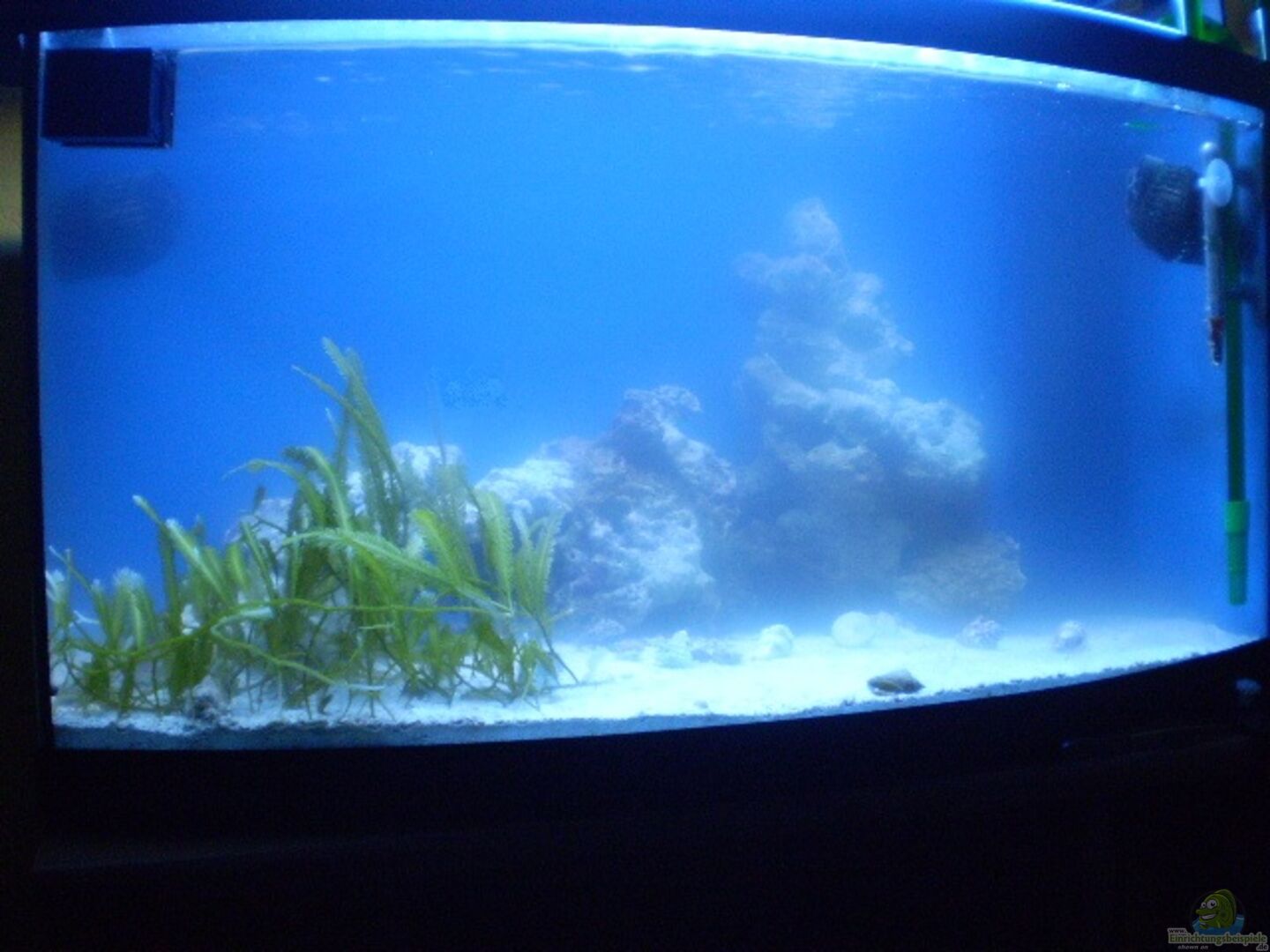 - Becken mit gebogener Frontscheibe, deshalb die unterschiedlichen Breiteangaben. - Die Rückwand und die rechte Seitenscheibe ist mit einer dunkelblauen Folie beklebt worden. - Plexigla??bodenplatte zum Schutz vor Gla??bruch - Plexigla??abdeckscheibe