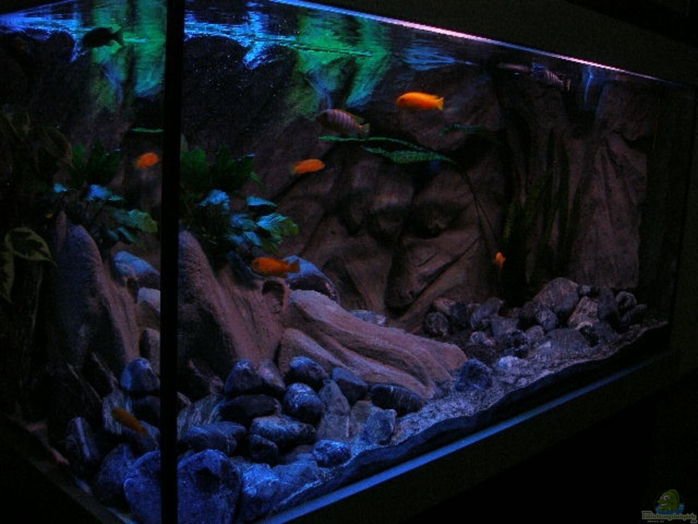 Selbstgebaute und zum Teil hinterschwimmbare Rückwand. Ziel war es, eine Rückwand zu gestalten die ziemlich Naturnah ist, und den Ansprüchen der Fische entspricht. Als Motiv diente ein gemachter Ausschit aus dem Video "Fastzination Malawiesee". Diese war wirklich nicht einfach zu gestalten, aber unterm Strich denke ich, dass es uns einigerma??en gut gelungen ist. Bisher hat sich aber noch keiner beschwert. ;-) Steine (aus dem Baumarkt) etwa 20KG