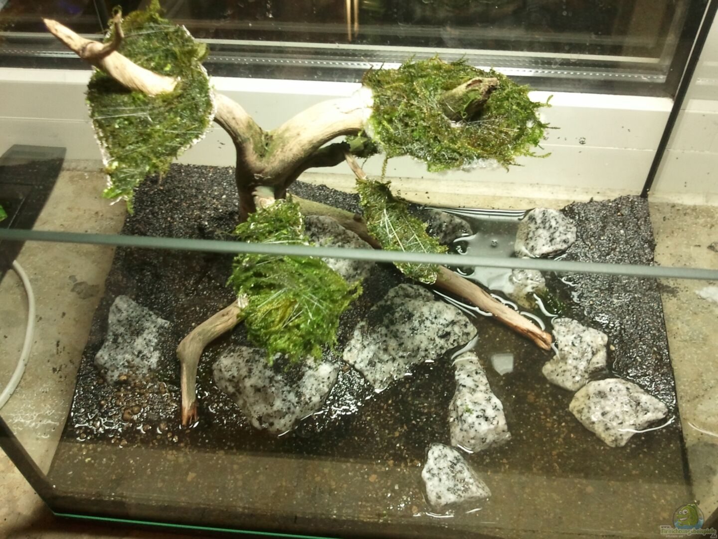 Kleines 12 l Aquarium mit den Standartma??en und schwarzer Silikonverklebung. War vorher ein kleiner Garnelentümpel.
