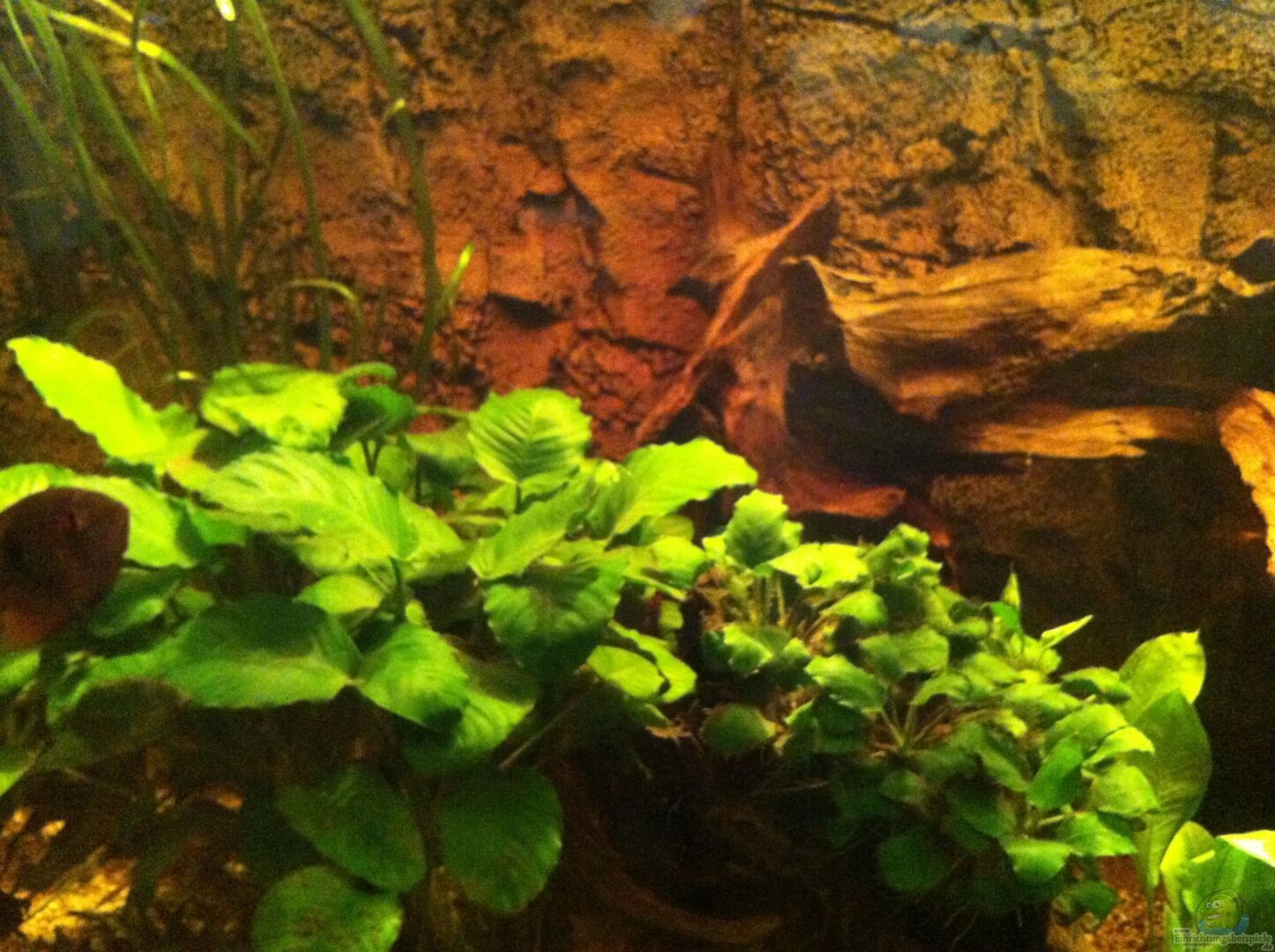 - Vallisneria spiralis (Glattblättrige Sumpfschraube) links im Hintergrund. Bild 1 - Echinodorus (Schwertpflanze) mittig links. Bild 4 - Anubias barteri (Breitblättriges Speerblatt) auf einem relativ flachen Stück Mangrove. Bild 3 - Anubias barteri nana (Zwergspeerblatt) mittig auf Mangrove. Bild 5 - Echinodorus bleherae (Schwertpflanze). Bild 5 - Cryptocoryne miOya (Brauner Wasserkelch). Bild 6