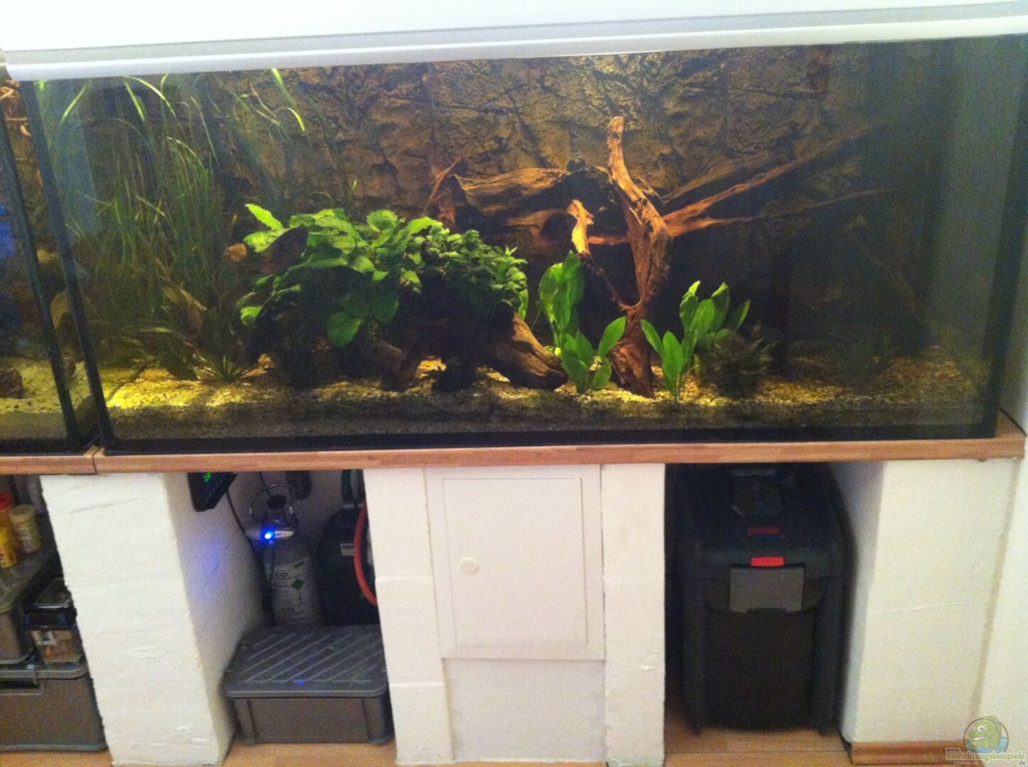 - Rückwand Module von Steinzeit Design Slim Rock. - Becken und Abdeckung gebaut von Diamant Aquarium 12 mm Glas. - Teile der Abdeckung ersetzt durch Makrolon. - Unterschrank aus Poren Beton gemauert mit Küchen Arbeitsplatte.