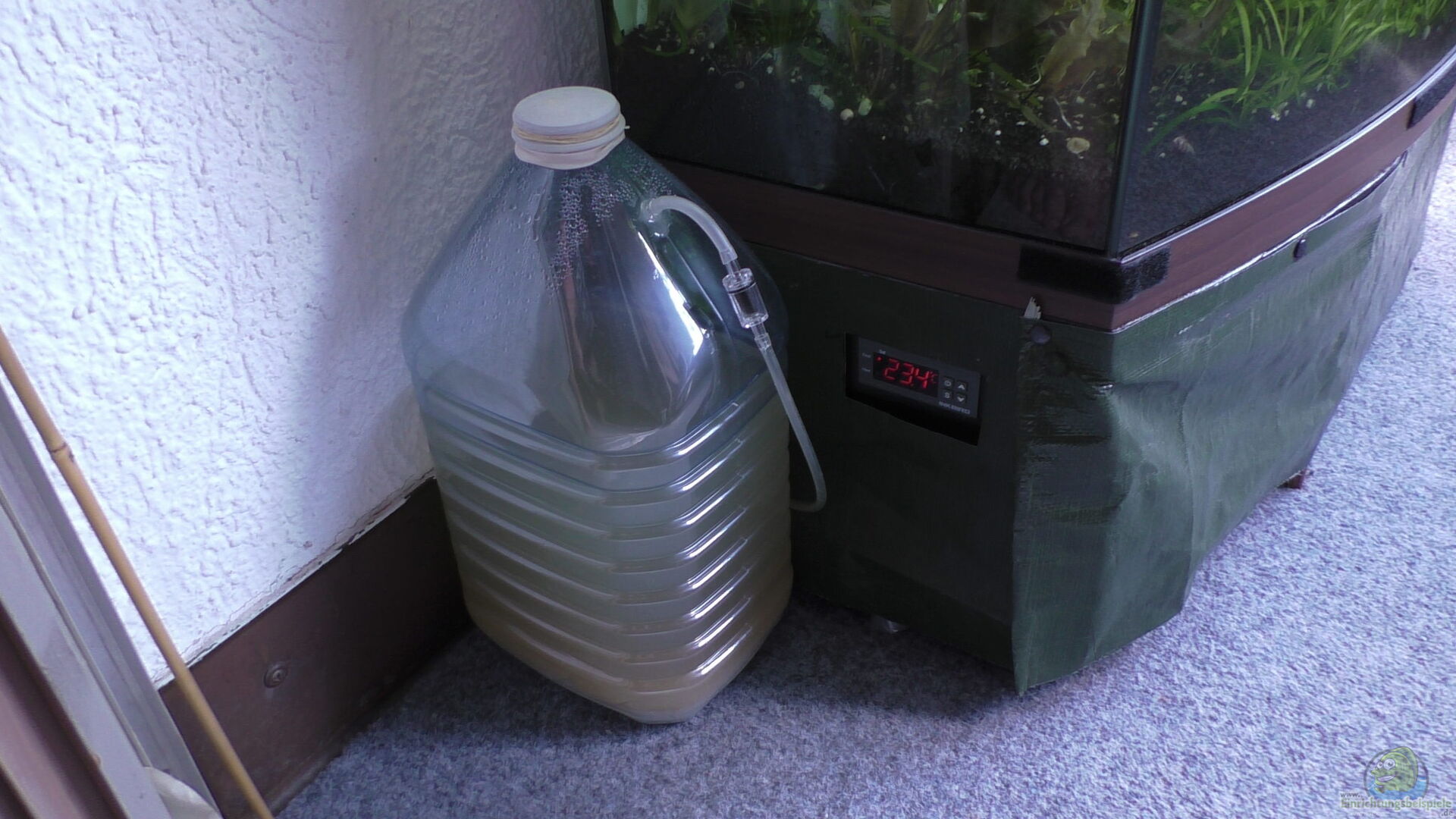 Externe Heizungssteuerung. Zwei Heizstäbe. Ein Ventilator. Bio co² Anlage mit Paffrathschale. Außerdem ist eine Pumpe mit 25 Meter schwarzem Gartenschlauch ans Becken angeschlossen um es mittels Sonnenenergie zu beheizen.