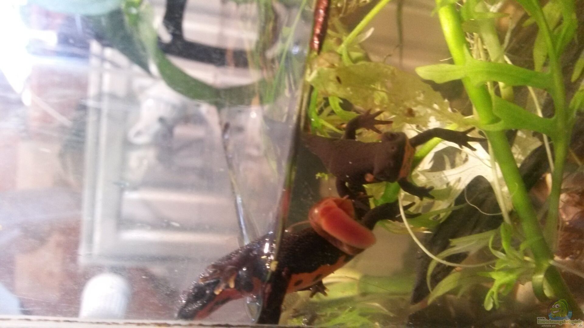 2 feuerbauchmolche (+2 minis (vermutlich Ende Oktober verschollen) etwa garnelen grö??e mit kiemenästen; erinnern mich an axolotl) diese werde ich leider nicht separat aufziehen, somit sind die dauerhaften Chancen leider eher gering. Vielleicht werde ich mich an einer späteren Generation versuchen. Leider ist das ganze derzeit zu aufwendig für mich, da ich nicht ganz fit bin. 5 red fire Garnelen (4 davon meine erste nachzucht ich hoffe diese Generation ist robuster es ist wirklich schlimm [...]