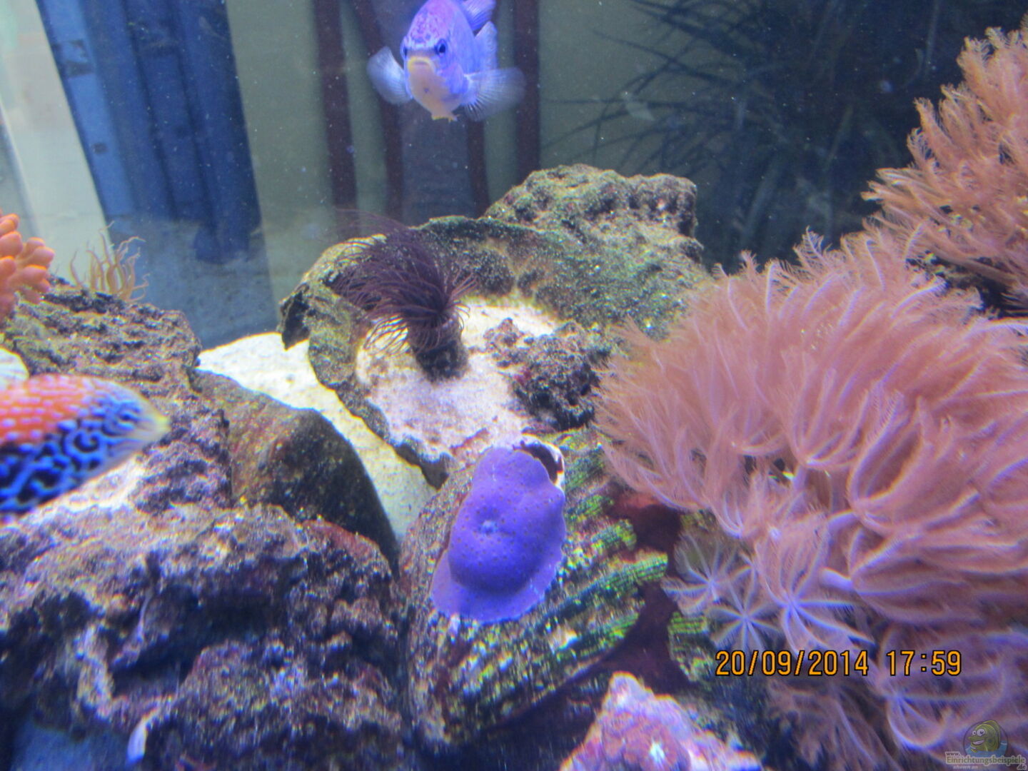 blaue Demoiselle über blaue Scheibenanemone von lippfisch (14)