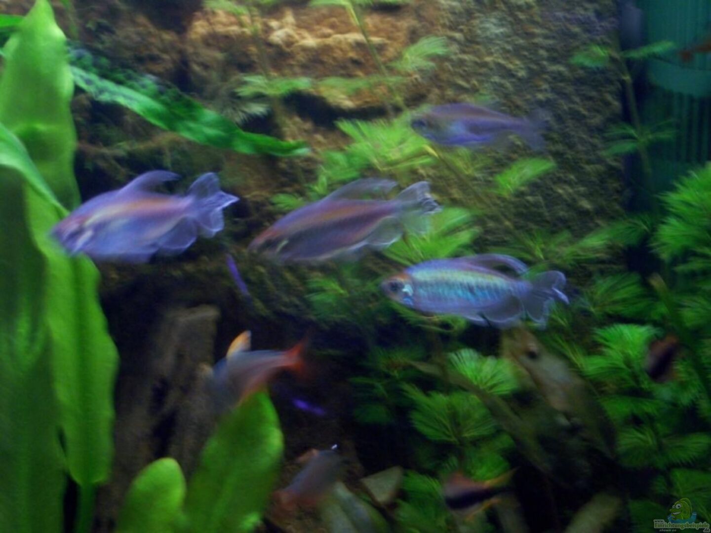 5 x Brochies splendens (Smaragd-Panzerwels) 7 x Phenacogrammus interruptus (Blauer Kongosalmler) 5 x Hyphessobrycon columbianus (Rot-Blauer Kolumbianer) 2 x Nematobrycon palmeri (Kaisersalmler) 1 x Peckoltia vittata (Zierbinden-Zwergschilderwels) verschiedene kleinere Schneckenarten