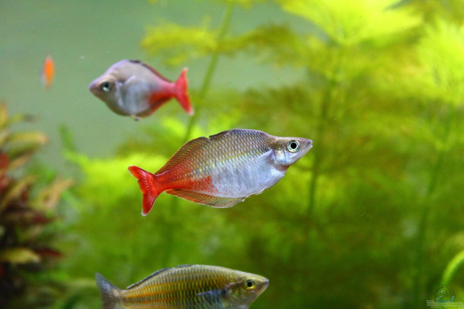Melanotaenia boesemani 28 Stück, 20 Männchen und 8 Weibchen Chilatherina bleheri 8 Stück, 5 Männchen 3 Weibchen Melanotaenia Trifasciata (Goyder River) 15Stück, geschlechtsangabe noch nicht 100%ig möglich da noch jung und erst ca. 2 cm dürfte aber ziemlich halbe / halbe sein. Melanotaenia Splendida Inornata 20Stück, 10 Männchen und 10 Weibchen. Boden: Sturisoma Aureum derzeit 3 Stück Garnelen, Red Fire weiterhin kleine Turmdeckelschnecken und Rote [...]