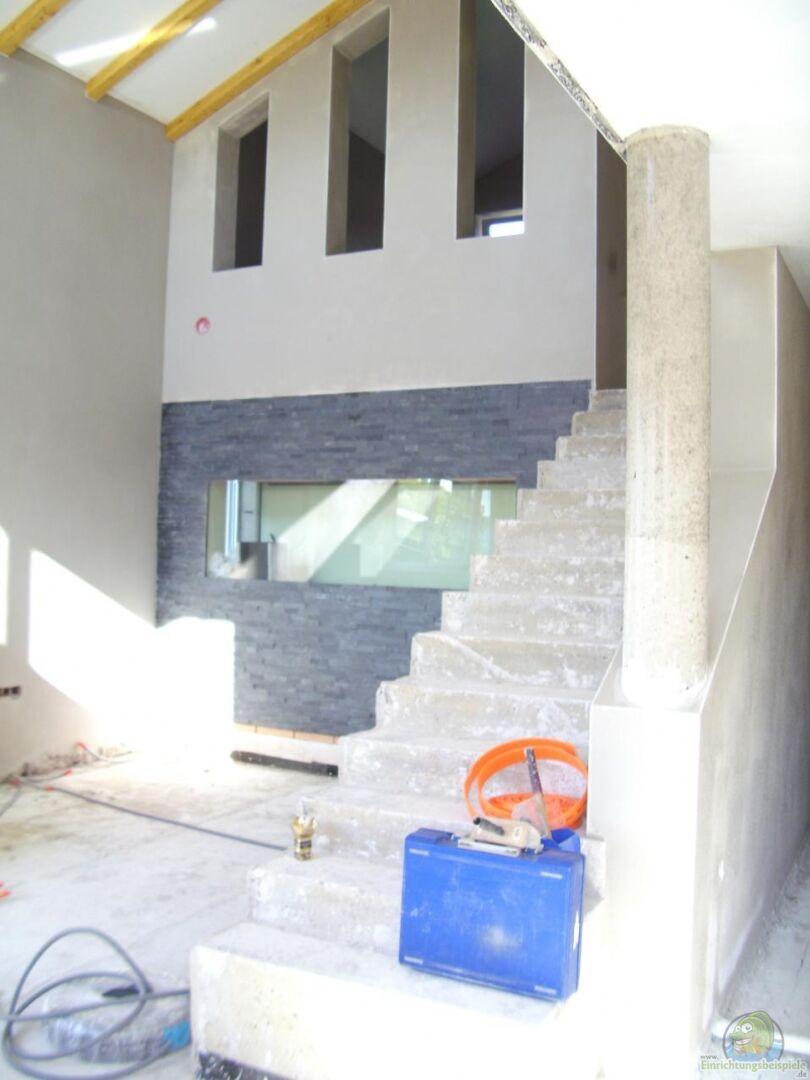 3x 26mm Bodenplatttenbohrungen für 1x Einlauf u. 2x Abgang Bodenplatte 4-fachgeteilt und doppelt geklebt Unterbau: 10cm Ytonsteine alle 50cm einen Fu?? 5cm Küchenarbeitsplatte 0, 5cm Sicherheitsunterlage Das ganze ist im Wohzimmer in die Wand eingearbeitet und mit schwarzen Klinkersteinen verblendet. Von hinten begehbar mit Ablauf und Zulauf direkt beim Becken.