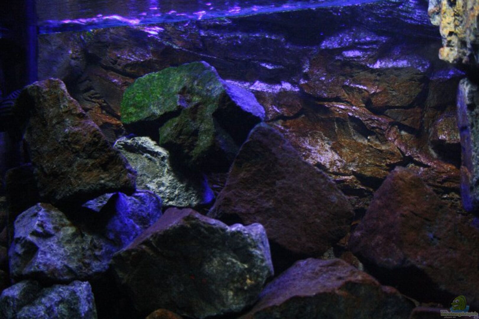 Ein 2 flammiger Leuchtbalken(T8) beleucht das Becken ! Die Röhren sind folgenderma??en geschraubt, vorne die Marin White, hinten die Marin Blue! Harzer Basaltsteine 90 kg Des weiteren: Ebenfalls eine 3 D Rückwand(Steinmotiv) Die Tiefe bewegt sich zwischen 1, 5 und ca. 10 cm !!!!