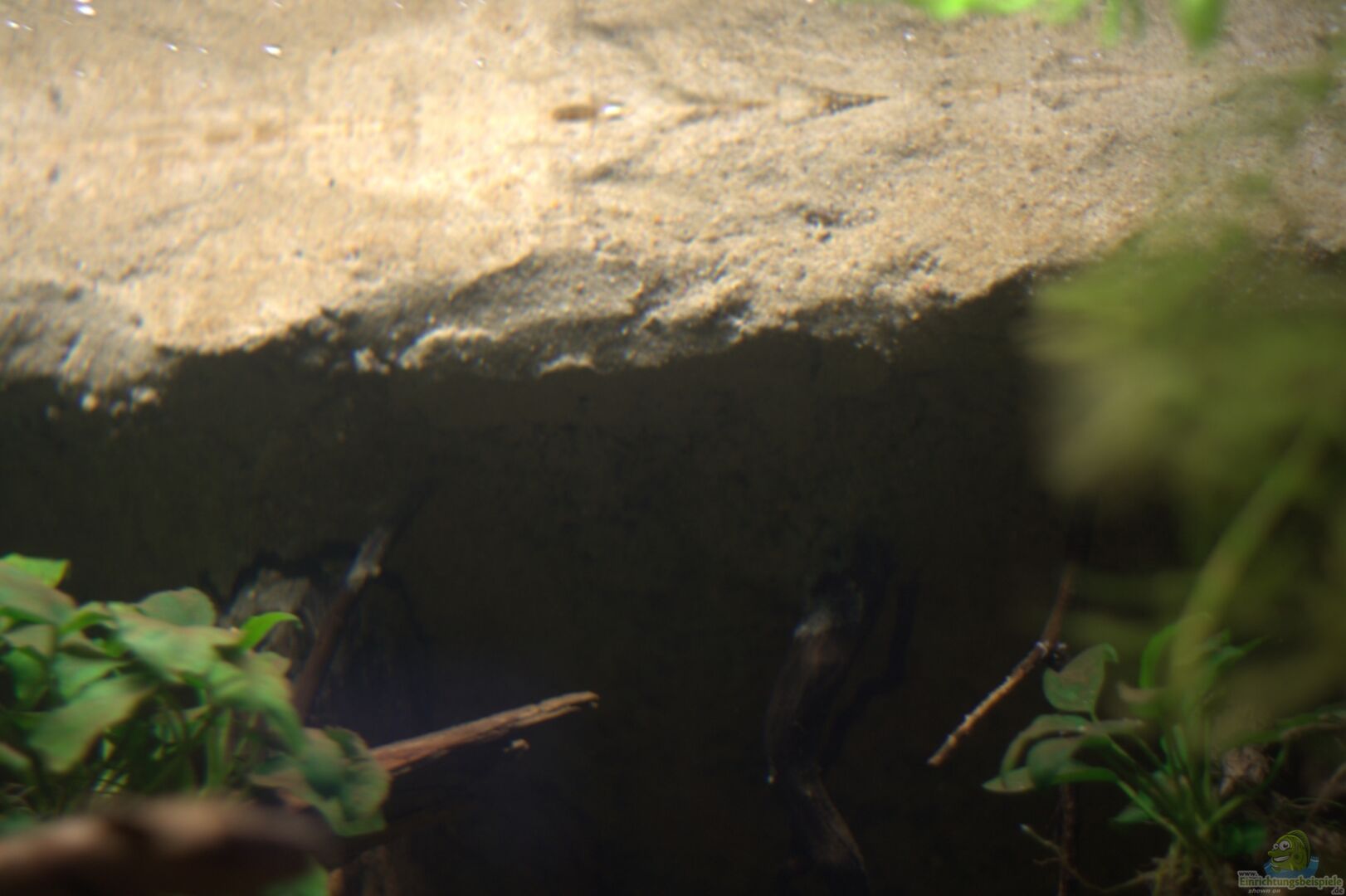 Sandsteine sind in dem Becken verarbeitet worden . Sie bilden den ??bergang vom Boden zur Rückwand und verstärken Eindruck von einem unterspülten Ufer. ~~ Rückwand mit ??berhang gefertigt von Falk Hummel dafür meinen allerherzlichsten Dank . Seitenwand wird auch verkleidet. Bilder der Wand siehe unten. Wurzelstücke von heimischen Bäumen sowie Moorkienholz wurden in dieser Wand verarbeitet , sie sollen ein unterspültes Steilufer mit freigelegten Wurzeln von Bäumen und Büschen [...]
