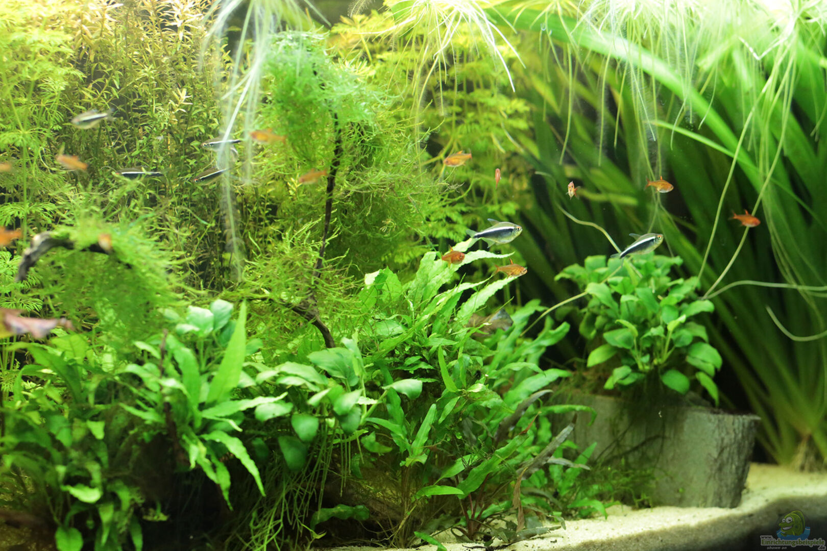 Hintergrund beide Seiten: Limnophila sessiliflora (Indischer Sumpffreund): ist eine anspruchslose Pflanze aus Südostasien. Bei wenig Licht schie??t sie schnell in die Höhe. Sie wird bis zu 40 cm hoch und 3-4 cm breit. Regelmä??ig gekürzt und die Triebe neu eingepflanzt ergibt sich schnell eine schöne, feinfiedrige, verkrautete Gruppe, die sich sehr gut zum Verstecken und Ablaichen verschiedener Fische eignet Ursprünglich hatte ich Cabomba caroliniana gepflanzt. Da diese aber einen [...]