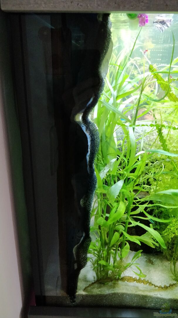 2 x 40 mm Bohrung rechts oben auf der Seite für Ablauf und Notüberlauf, automatischer Wasserwechsel ca 50L täglich, mit Überlauf vom 160L Filterbecken. Unter dem großen Becken ist jetzt ein kleines Aufzuchtbecken. Wird auch über den großen Filter betrieben.