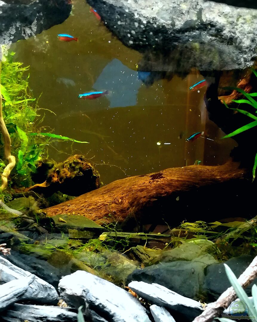 Der Haupt-Hintergrund im Aquarium ist mit einer selbstgebauten Rückwand versehen. Sie besteht aus Styropor, Fliesenkleber, schwarzem Aquarium-Kies und Asche vom Holzofen, damit das Ganze realistischer aussieht. Diese künstliche Felswand habe ich mit Höhlen und Löchern - Versteckmöglichkeiten für die Welse - versehen und alles mit Epoxit-Harz versiegelt. Holz und Wurzeln habe ich bei einem nahen Fluss gesammelt. Das Holz habe ich zusätzlich mit Edelstahl-Schrauben unsichtbar verschraubt, damit [...]