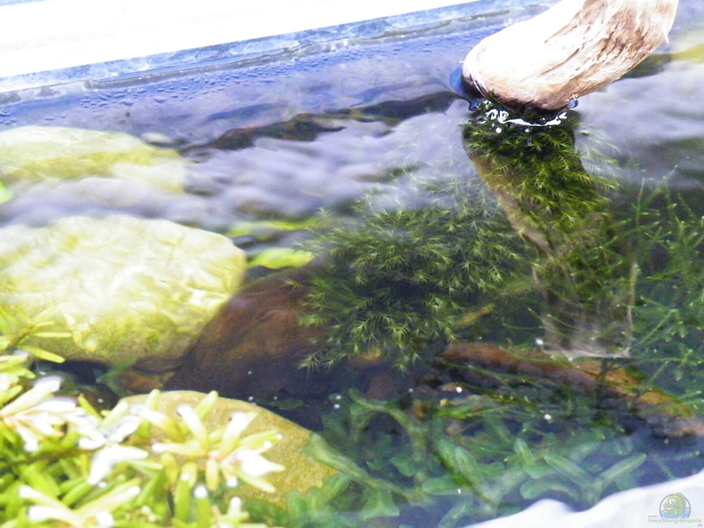 Cryptocoryne Wendtii Grün (Grüner Wasserkelch) Rotala sp. `Green` (Grüne Rotala) Blyxkraut (wahrscheinlich: Blyxa japonica) Taxiphyllum barberi (Vesicularia dubyana, Javamoos) Monosolenium tenerum (Lebermoos) Hemianthus callitrichoides `Cuba` (Kubanisches Perlenkraut) Eleocharis parvula (Zwergadelsimse) Ceratophyllum Demersum (Hornblatt) Salvinia Cucullata (Minischwimmfarn) Salvinia auriculata (Büschelfarn) Pistia stratiotes (Muschelblume) Riccia fluitans - auf Flusskiesel [...]