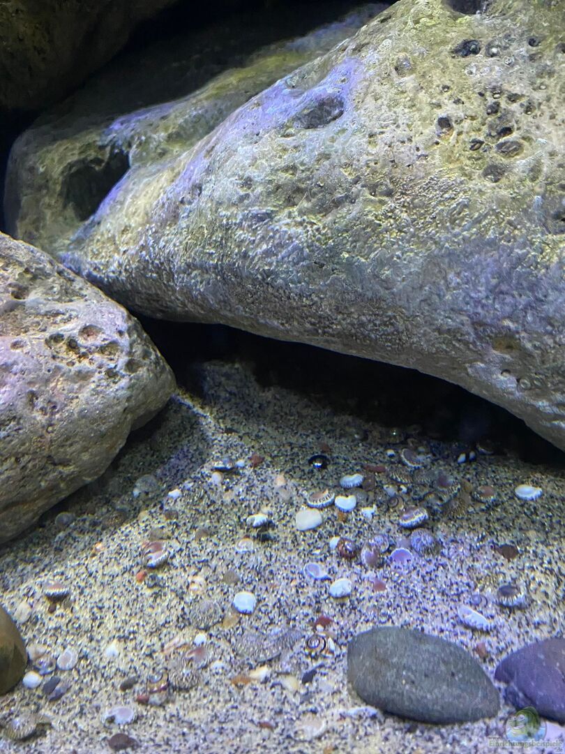 Für die Einrichtung des Aquariums wurden überwiegend Kunststeine verwendet. Alle Module wurden so platziert, dass sich möglichst viele Rückzugsmöglichkeiten und Reviergrenzen ergeben. Folgende Module wurden eingesetzt: 2x RockZolid River Stone Modul A 1x RockZolid River Stone Modul C 1x RockZolid River Stone Modul D 1x RockZolid River Stone Modul F 1x RockZolid River Stone Modul G 1x RockZolid River Stone Modul I 1xRockZolid River Stone Modul J 2x RockZolid River Stone Modul [...]