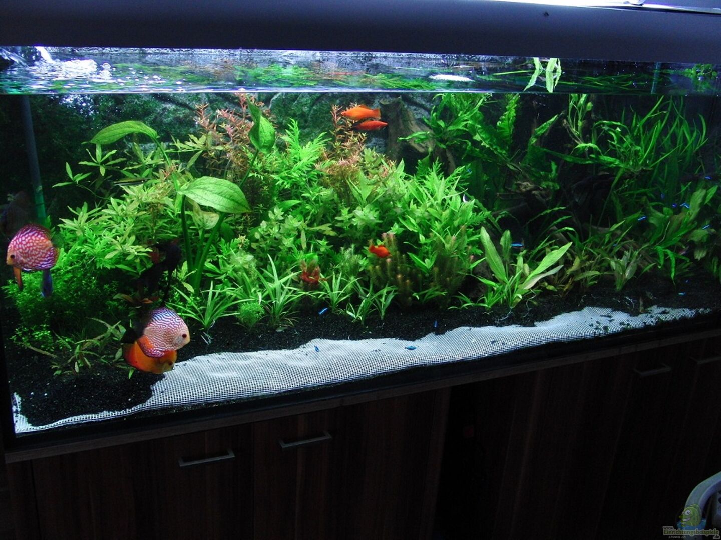 1 Gro??e Moorikenwurzel 2 Zusatzäste Gerade das Moorikenholz ist sehr wichtig für die beiden L204 Welse, die fast den ganzen Tag damit verbringen dieses "abzugrasen" Die ursprüngliche Rückwand wurde wiederentfernt. Moment ist noch nicht ganz klar was hinkommt, wird aber wohl eine wei??e MDF Platte. Auf weitere Einrichtung wie Steine etc wurde verzichtet, da diese eh zu schnell von den Pflanzen überwachsen werden.