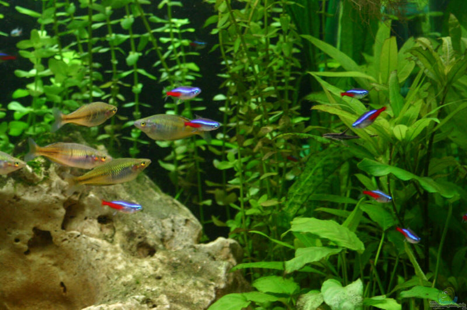 10 Regenbogenfische / Melanotaenia boesemani 15 Neons / Paracheirodon innesi 5 Amano Garnelen 4 Corydoras marmoriert mit verlängerten Flossen 3 Panda Welse 2 Sturisoma aureum 4 Apfelschnecken
