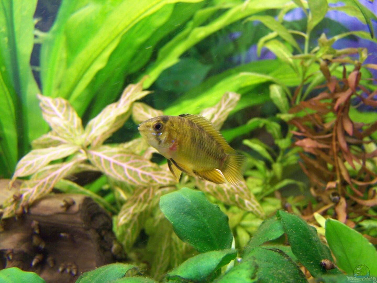 4 Segelflosser (Pterophyllum scalare) 8 Blaue Kongosalmler (4 M/4W) 5 Schmucksalmler (Hyphessobrycon bentosi bentosi) Rest von ursprünglich 10 6 Welse (ein Pärchen L 144, ein Pärchen braune Antennenwelse, zwei Panaquolus maccus) 7 Panzerwelse (vier Panda-Panzerwelse, drei Schachbrettpanzerwelse) 2 Maroni-Buntbarsche (ein Pärchen) 2 Borellis Zwergbuntbarsche (ein Pärchen) 3 Netzschmerlen (Botia lohachata) Au??erdem sind noch vier blaue Neons, zwei Feuersalmler, drei Kardinalfische, [...]