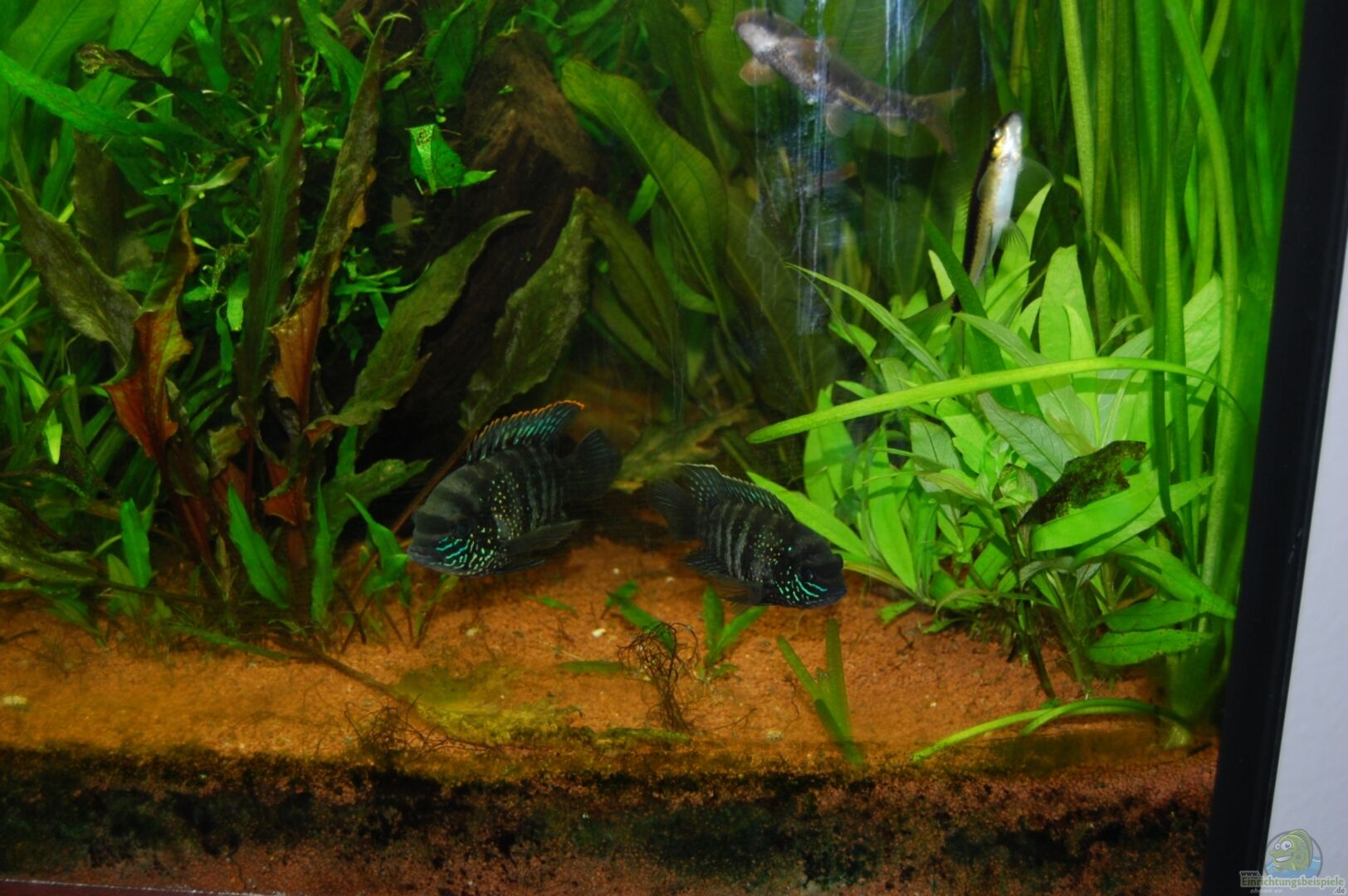 Der Momentane Bestz besteht aus: 2m, 2w Blaupunktbuntbarsch (Aequidens pulcher) + Jungfische 8 x Siamesische Rüsselbarbe 5 x Brauner Antennenwels (1m, 2w) ____ Der Erste Besatz bestand aus: 4 x Skalar 6 x Guppy 20 x roter Neonsalmler 5 x Pitbull-Harnischwels 3 x Siamesische Rüsselbarbe 2 x Zwergfadenfisch 3 x Garra Rufa Nach und nach wurde der Besatz dann geändert. Es zeigte sich, dass die Skalare gerne an der Lochkrankheit erkranken und dann sterben. Daher [...]