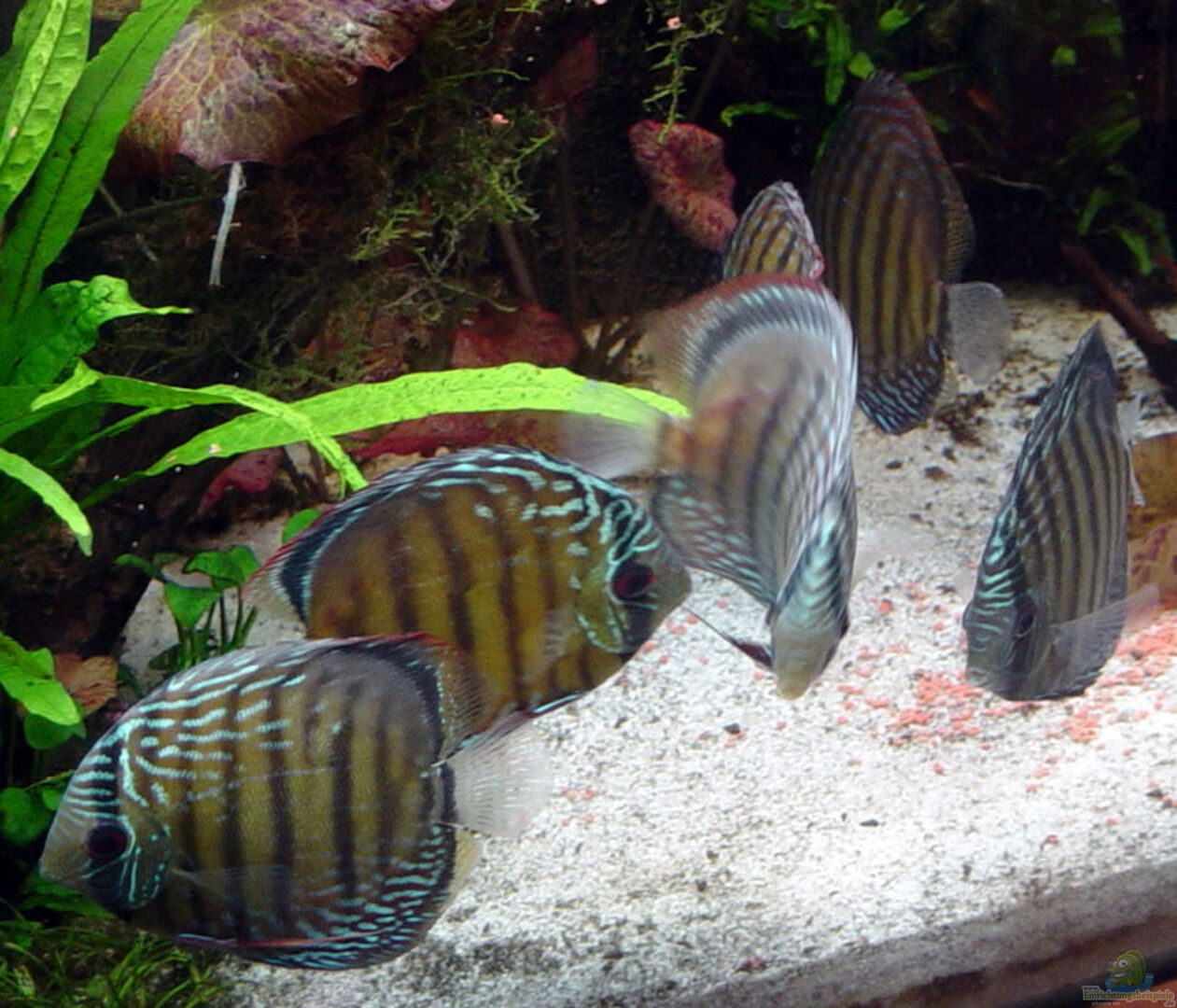 6x Wildfänge Blue Lagoa Azul Symphysodon aequifasciatus ------ Er wird als `König der Aquarienfische` bezeichnet, da er durch seine ruhige Schwimmweise sehr majestätisch wirkt. Der Name Diskus steht für den besonders abgeflachten und fast runden Körper mit niedrigen, aber sehr langen Flossen. Der Mund ist winzig. Die Grundfärbung ist Gelb- Grau, belebt durch leuchtend blaue Streifen. Beide Geschlechter können bis zu 15 cm lang werden. Diskusfische reagieren empfindlich auf Veränderungen [...]