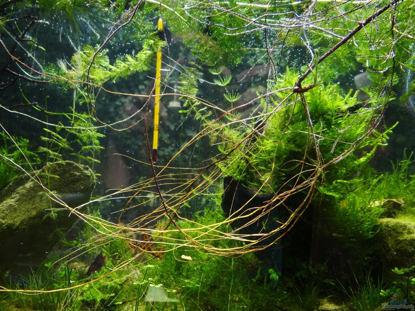 Eleocharis acicularis sp. mini Marsilea hirsuta Myriophyllum sp. Egeria sp. versch. Moose (Fissidens, Taiwan, Creeping, Flame) Echinodorus ´Red Chamäleon´ Hornkraut Brombeere Heckenrose (darüber an der Wand angebracht) Salix sp. die soll mal ein Bonsai werden.