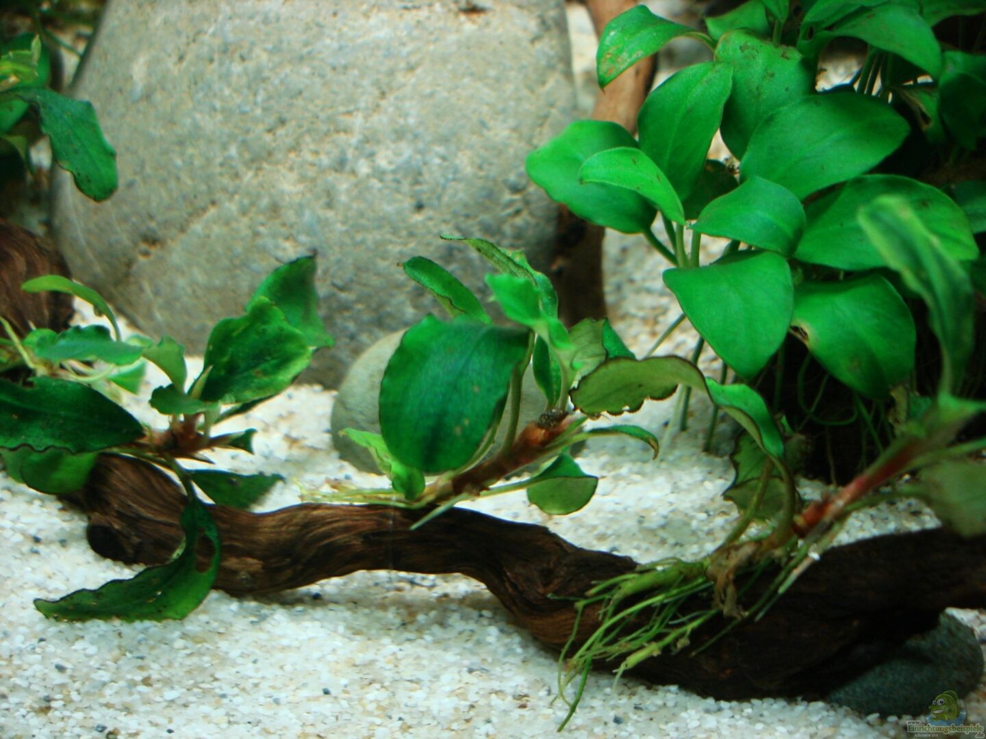 Mircosorium pteropus Widelov Anubias nana bonsai Taxiphyllum barbieri Cladophora aegagropila Egeria densa Rotala rotundifolia Das Becken ist gerade in der Einlaufphase, Pflanzen werden im Laufe der nächsten Wochen besser platziert.