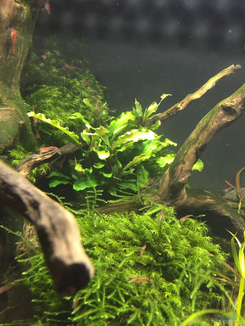 Bei den Pflanzen habe ich auf pflegeleichte und nicht allzu lichthungrige Pflanzen gesetzt: Fissidens fontanus (Quellenliebendes Spaltzahnmoos) Taxiphyllum barbieri (Javamoos) Juncus repens (Kriechende Binse) Cryptocoryne lutea ???Hobbit??? (Hobbit Wasserkelch) Hygrophila lancea ???Araguaia??? (Araguaia Wasserfreund) Bucephalandra spec. Wavy Leaf (Gewelltblättrige Bucephalandra) Myriophyllum mattogrossense (Mato-Grosso-Tausendblatt) Eleocharis acicularis (Nadelsimse) Littorella [...]