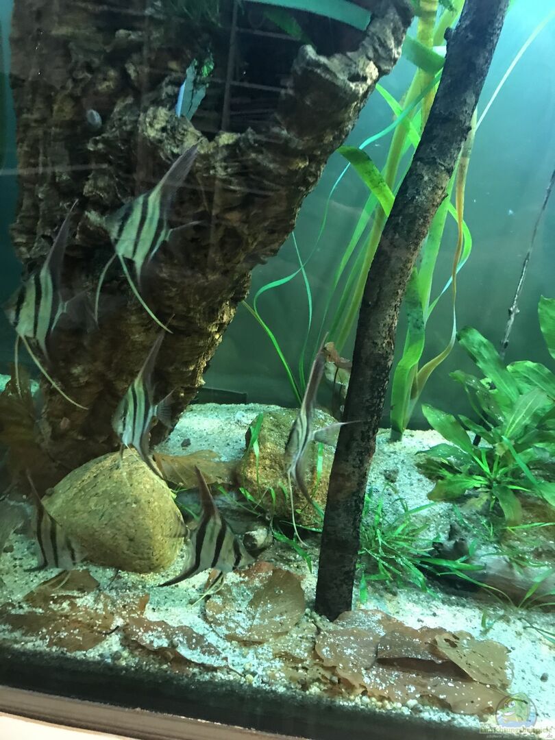 Selbstgesammeltes Buchen- und Holunderholz Korkröhren zum Verstecken des Zu- und Ablaufs Kleine und große Kieselsteine Ab und an gebe ich etwas Buchen- oder Eichenlaub dazu