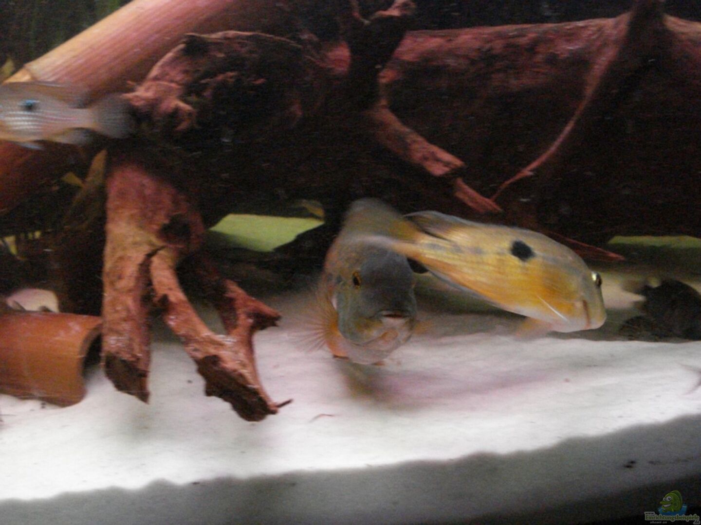 Barsche: Cichlasoma nigrofasciatum 1m/1w (Goldform) Cichlasoma nicaraguense 2m/3w Cichlasoma sajica 2m/2w Thorichthys meeki 1m/3w Welse: 6x Megalechis thorocata 3x Glyptoperichthys gibbiceps 14x Corydoras aenus 6x Corydoras wotroi L114 WF L77 Schmerlen (passen eigentlich nicht, sind aber nützlich): 3x Chromobotia macracanthus 1x Botia lohachata