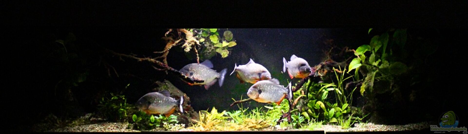 Pygocentrus Cariba (Schulterfleck-Piranha). Ich habe sie 2015 aus Venezuela erhalten und von 5 cm ab gro??gezogen. Der Gro??e misst mittlerweile 35 cm, die anderen 4 sind bei 30 cm. Beifische aus der Beckenauflösung des Sohnes: einige Guppies, siamesische Saugschmerlen und ein par Helena-Raubschnecken.