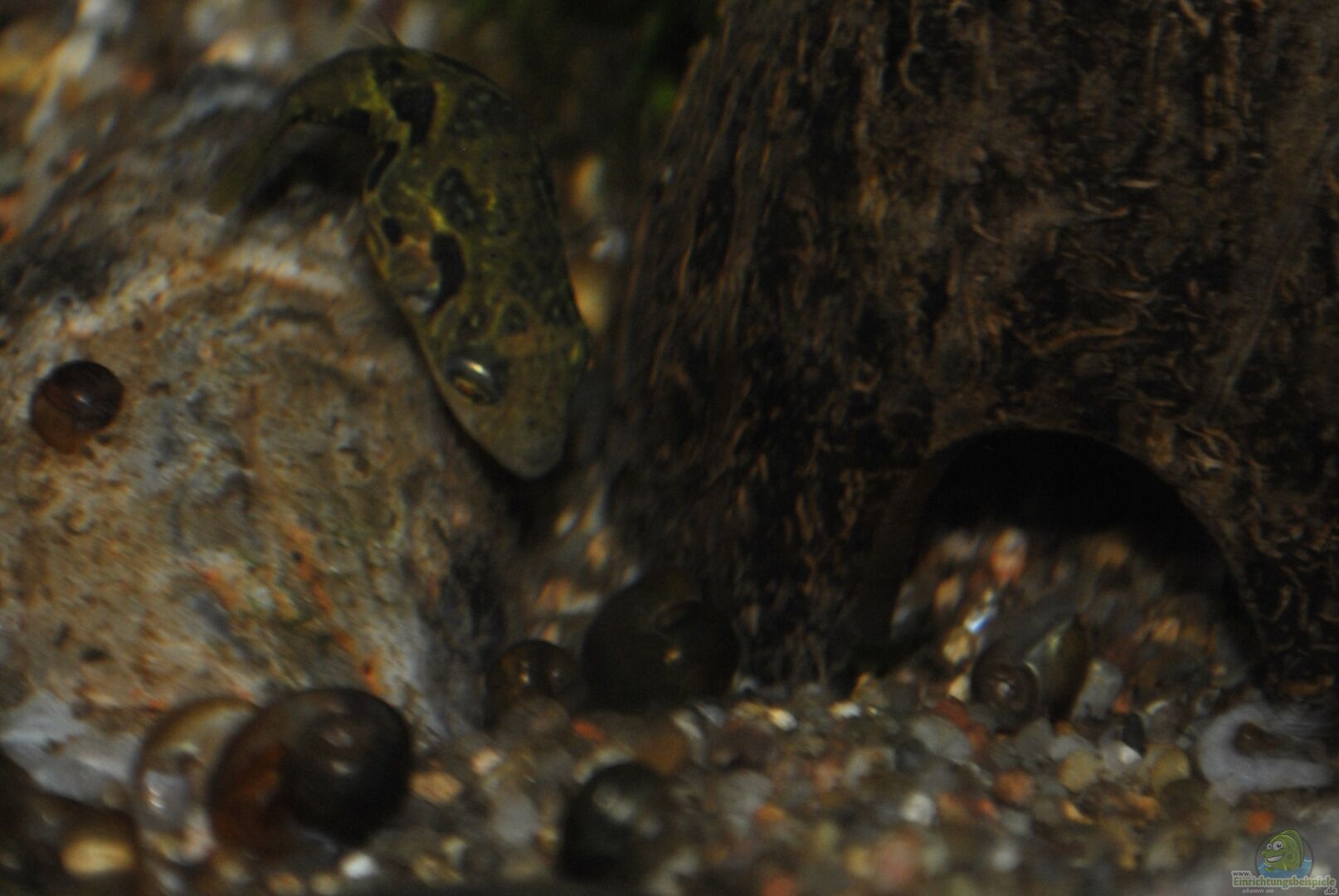 2 Zwergkugelfische (Carinotetraodon travancoricus) kurzzeitig lebende Blasen- und Posthornschnecken :-) Aufgrund der kleinen Dimensionen des Aquariums soll der Besatz auch so bleiben. Bei den beiden kleinen Süsswasserkugelfischen handelt es sich um ein männliches und ein weibliches Tier. Die Geschlechtsunterschiede können im eigenen Blog nachgelesen werden. Um eine Zucht zu ermöglichen wurde noch ein Miniaquarium mit einem effektiven Volumen von ca. 18l (mit Schwammfilter und Thermostat) [...]