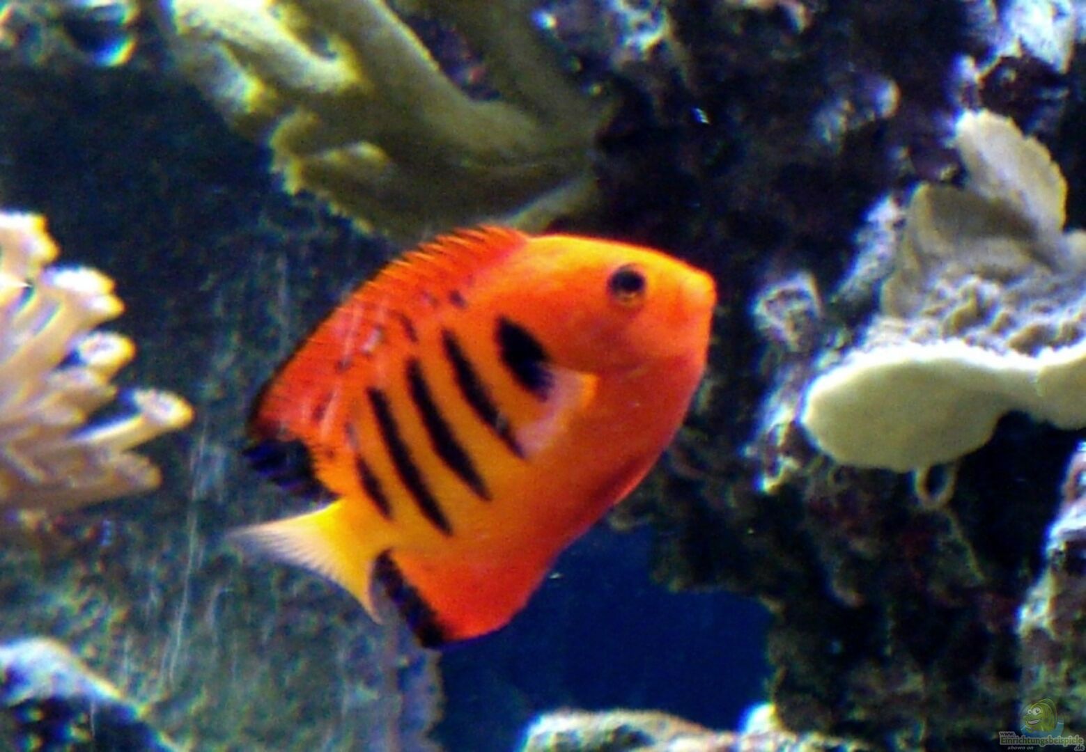 1 Zebrasoma flavescens (Doctor) 1 Cirrhitichthys falco (Korallenwächter) 2 Sphaeramia nematoptera (Pyjama-Kardinalbarsch) 2 Amphiprion ocellaris (Anemonenfisch) 2 Pterapogon kauderni (Kardinal) 1 Chrysiptera talboti (Demoiselle) 2 Centropyge acanthops (Zwergkaiser) 1 Centropyge loriculus (Zwergkaiser) Drücker und Igel sind zwar noch auf den Fotos zu sehen aber auf Grund der grö??e nicht mehr mit im Besatz!!!! 1Taenianotus triacanthus ( Schaukelfisch ) 1Kofferfisch ? Soll laut [...]