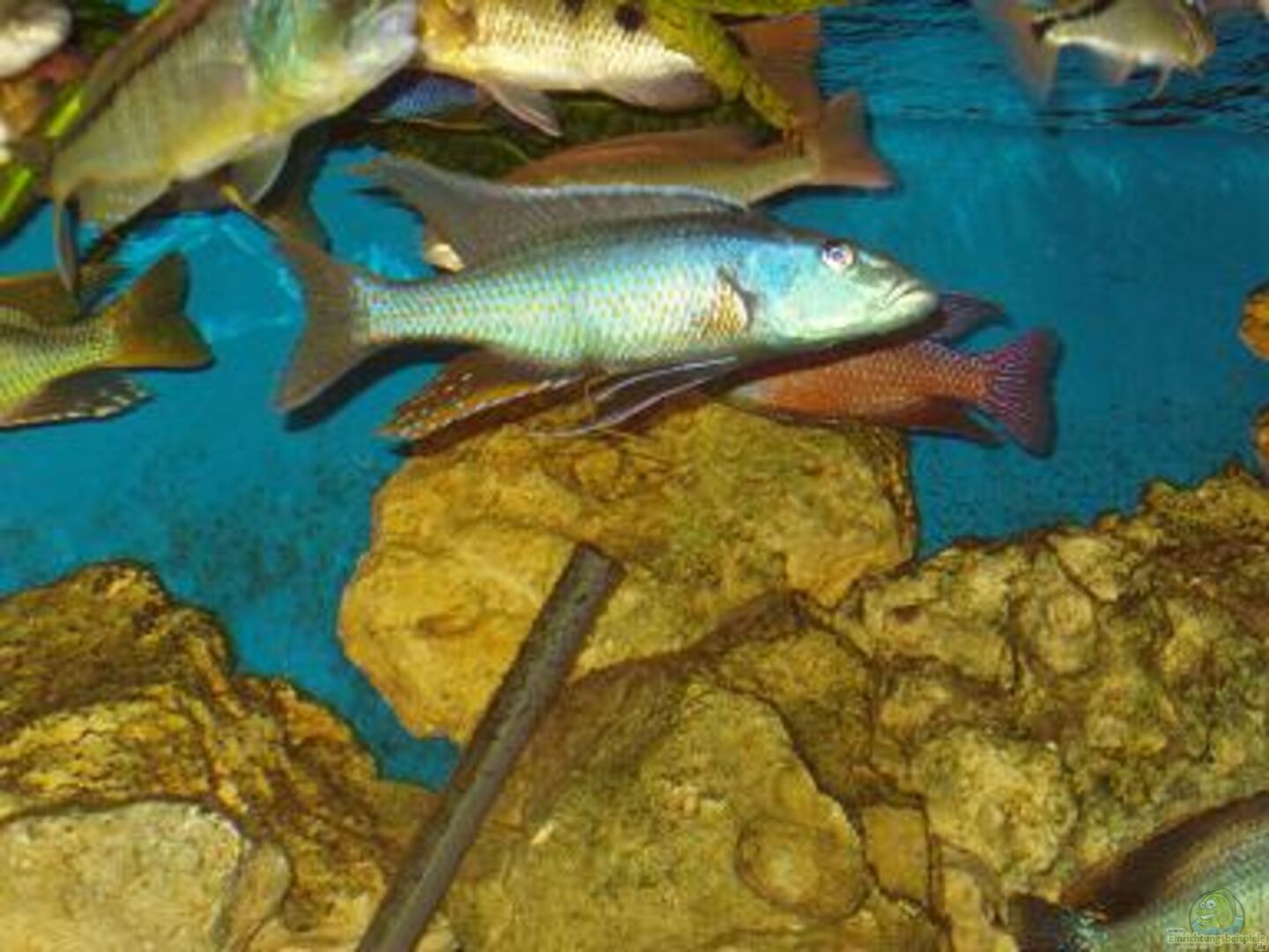 Hier findest Du traumhaft schöne Aquarien, die mit Buntbarschen der Art Champsochromis caeruleus (Forellenbuntbarsch) aus dem Malawisee besetzt sind.