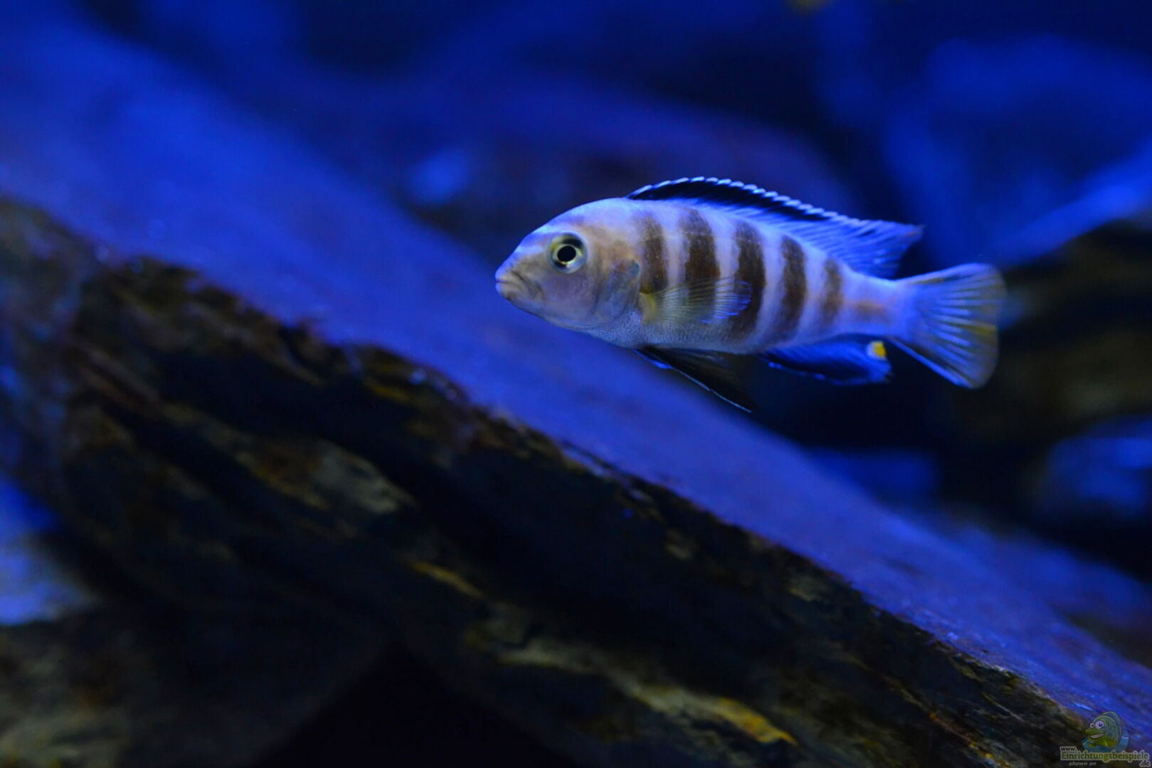 3/7 Pseudotropheus saulosi, wobei aufgrund des Alters von ca. 4 Monaten die genaue Geschlechtsunterscheidung noch schwer fällt.