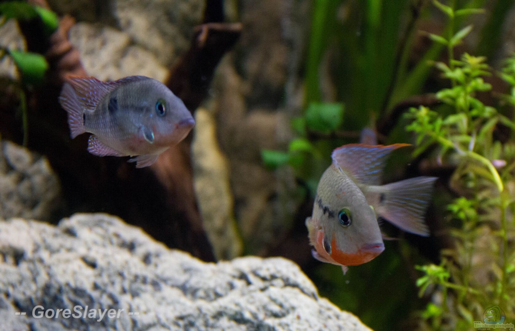 Aktueller Besatz: - 3x Chichlasoma meeki - Feuermaulbuntbarsch (2m, 1w) - 2x Ancistrus spec - Antennenwels (2m) - 6x Archocentrus nigrofasciatus (4m, 2w) - Grünflossenbuntbarsch -> davon jeweils 50% Farbvariante Weiss - 3x Andinoacara rivulatus - Goldsaumbuntbarsch (1m, 2w) Die Ancistrus wurden als ???Altlasten??? wieder mit eingesetzt, da sie bisher immer gut mit den Meekis harmonierten und ich mich ungern von Ihnen trennen wollte.