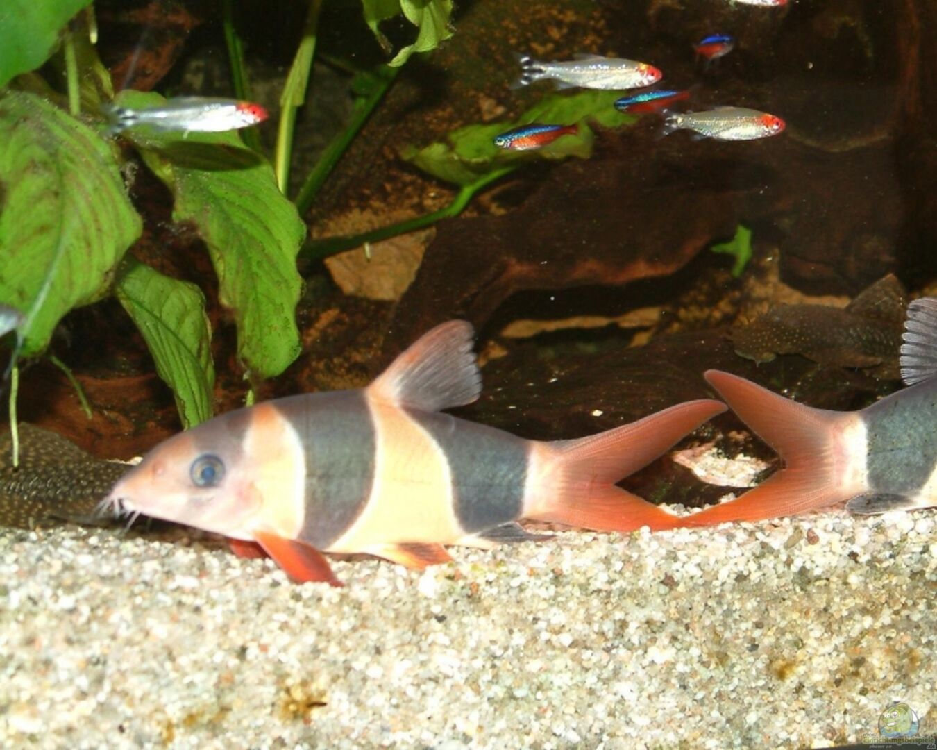 35 Paracheirodon axelrodi / Roter Neon 10 Hemigrammus rhodostomus / Rotkopfsalmler 6 Hyphessobrycon sweglesi / Roter Phantomsalmler 2 Mikrogeophagus ramirezi / Schmetterlingsbundbarsche (1m/1w) 1 Pterophyllum scalare / Schwarzfleckskalar (1m/0w) 10 Corydoras paleatus / Marmorierter Panzerwels 7 Ancistrus spec. / Antennenharnischwels (5m/2w) 2 Chromobotia macracanthus / Prachtschmerlen (2m/0w) ca.10cm