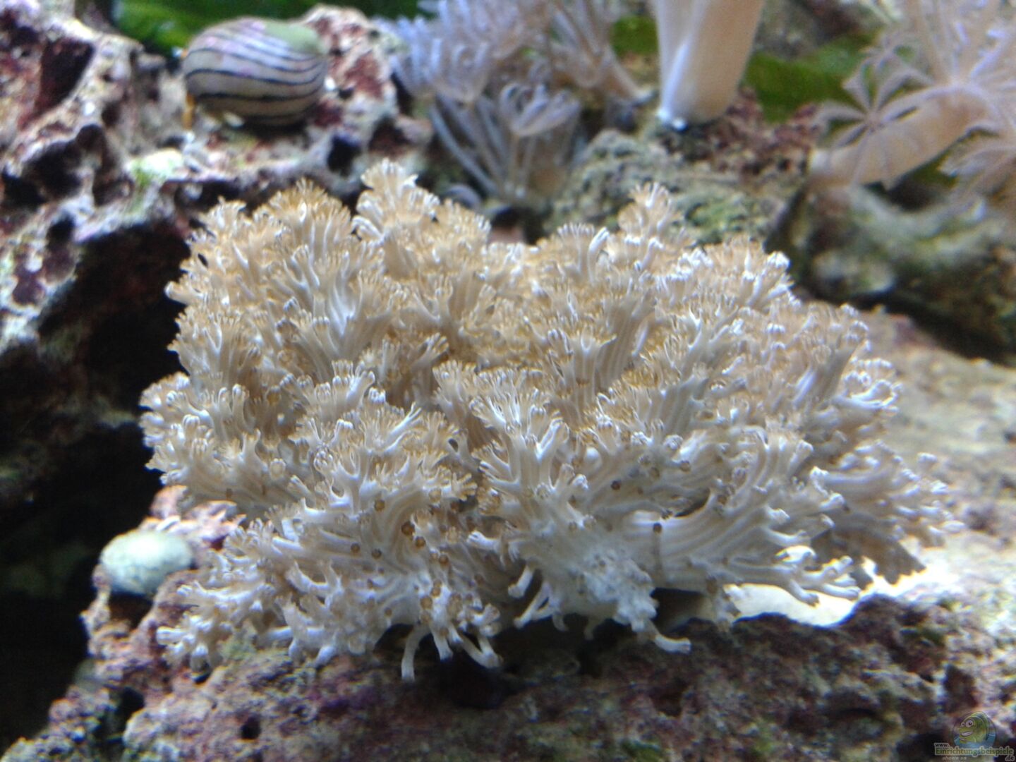 1 x Ecsenius stigmatura / Schwanzfleckblenny 1 x Pseudocheilinus hexataenia / Sechsstreifenlippfisch Hornkorallen - Erythropodium caribaeorum - Affenhaarkoralle - Briareum stechei - Kalkachsenkoralle Krustenanemonen -Protopalythoa sp. 05? -Protopalythoa sp. grün Scheibenanemonen -Discosoma sp. 12 "blau" -Discosoma sp. 07 -Discosoma sp. 15 -Discosoma sp. 16 -Discosoma sp. 20 Weichkorallen -Litophyton sp. 01 -Capnella imbricata [...]