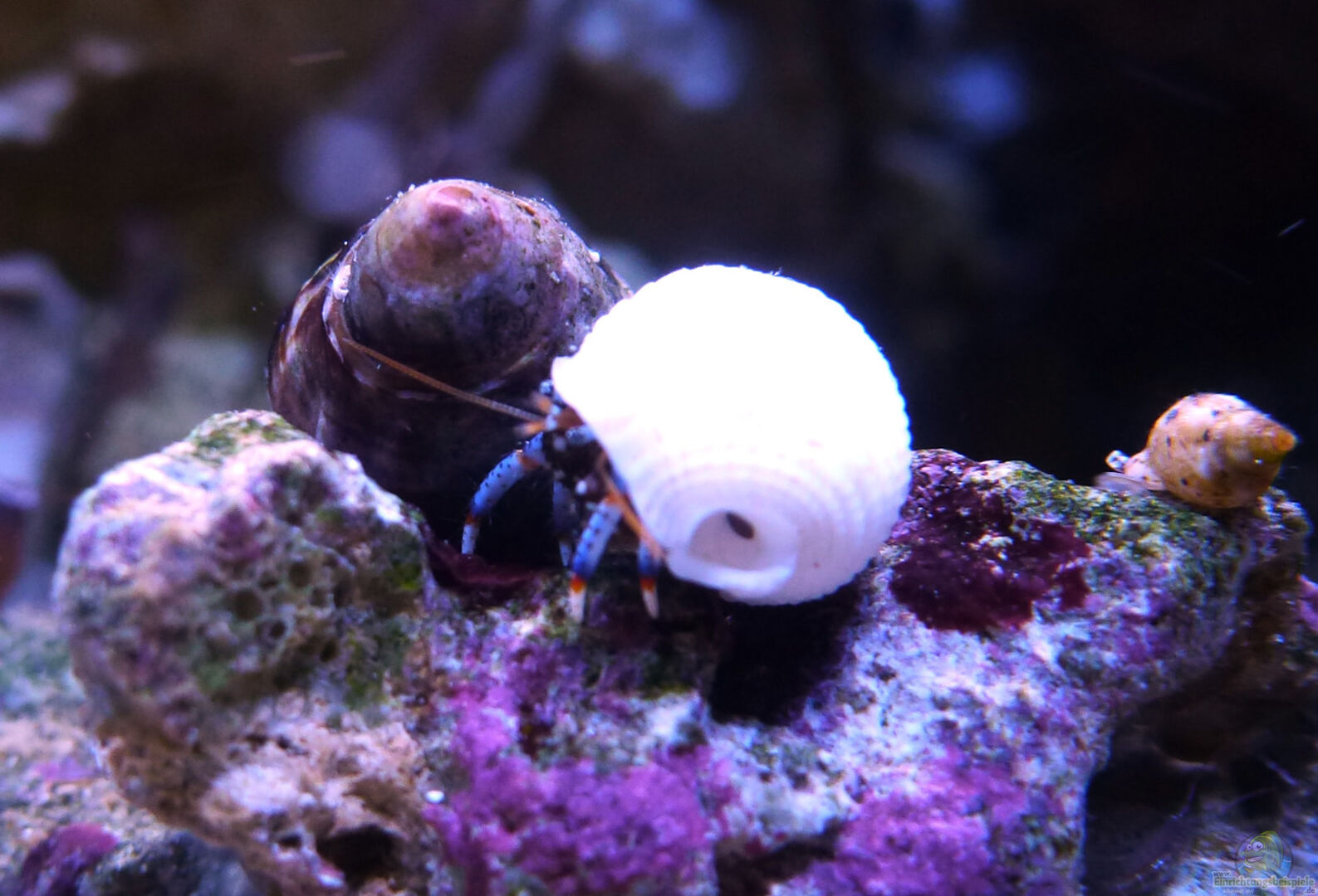 Hier findest du Infos zur Haltung und Beispiele für die Einrichtung deines Aquariums für Clibanarius longitarsus (Blau-Gestreifter Einsiedlerkrebs).