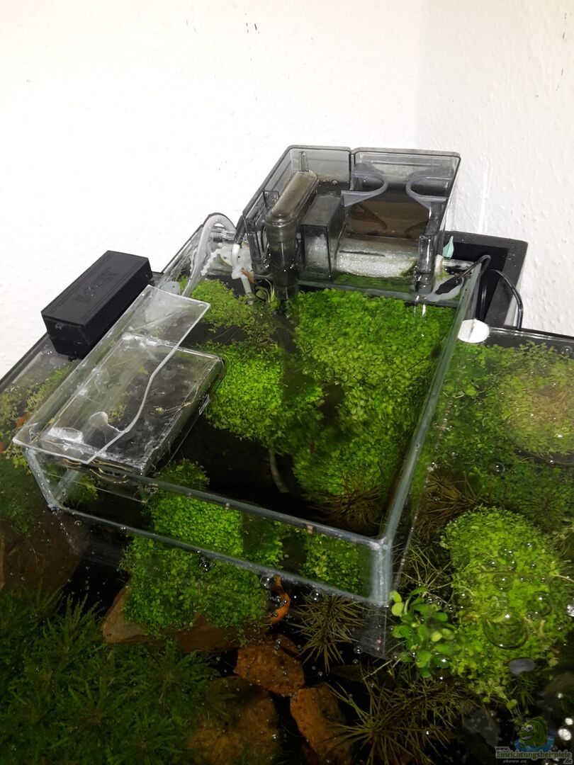 Heizung erfolgt über ein 60 W Bodenfluterkabel gesteuert durch ThermoControl Pro II CO² Versorgung über 2Kg Mehrwegflasche mit Nachtabschaltung Um das CO² versteckt und vor allem geräuschlos ins Wasser einzuleiten habe ich mir eine Paffrathschale gebastelt. Sie sieht nicht gerade schön aus, aber erfüllt ihren Zweck.