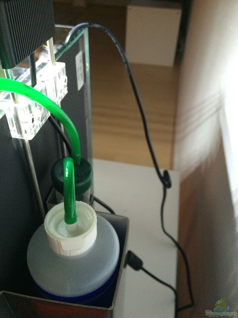 Zusätzlich betreiben wir in dem Cube auch noch eine CO2 Anlage. Bei der Anlange handelt es sich um ein Dennerle CO2 Pflanzen-Dünge-Set BIO 60 für Aquarien bis 60l. Die Anlage läuft auch sehr gut und bereits kurze Zeit nach dem sie in Betrieb genommen wurde konnte ein verstärktes Pflanzen Wachstum beobachtet werden.