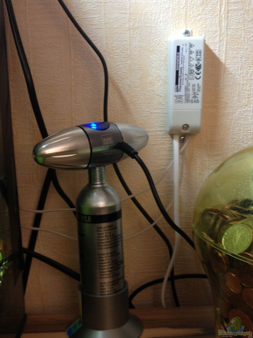 -DENNERLE Nano CO2 Komplett-Set SPACE (mit Magnetventil) -eingespeist durch ADA Pollen 20 mm -gemesen durch CO2 Langzeittest Correct + pH -Dennerle Bodenfluter Eco-Line ThermoTronic - 5 Watt für Becken von 30-60l - Dennerle hangon Glasthermometer -Eheim air pump 100 (Leistung 100 l / h)