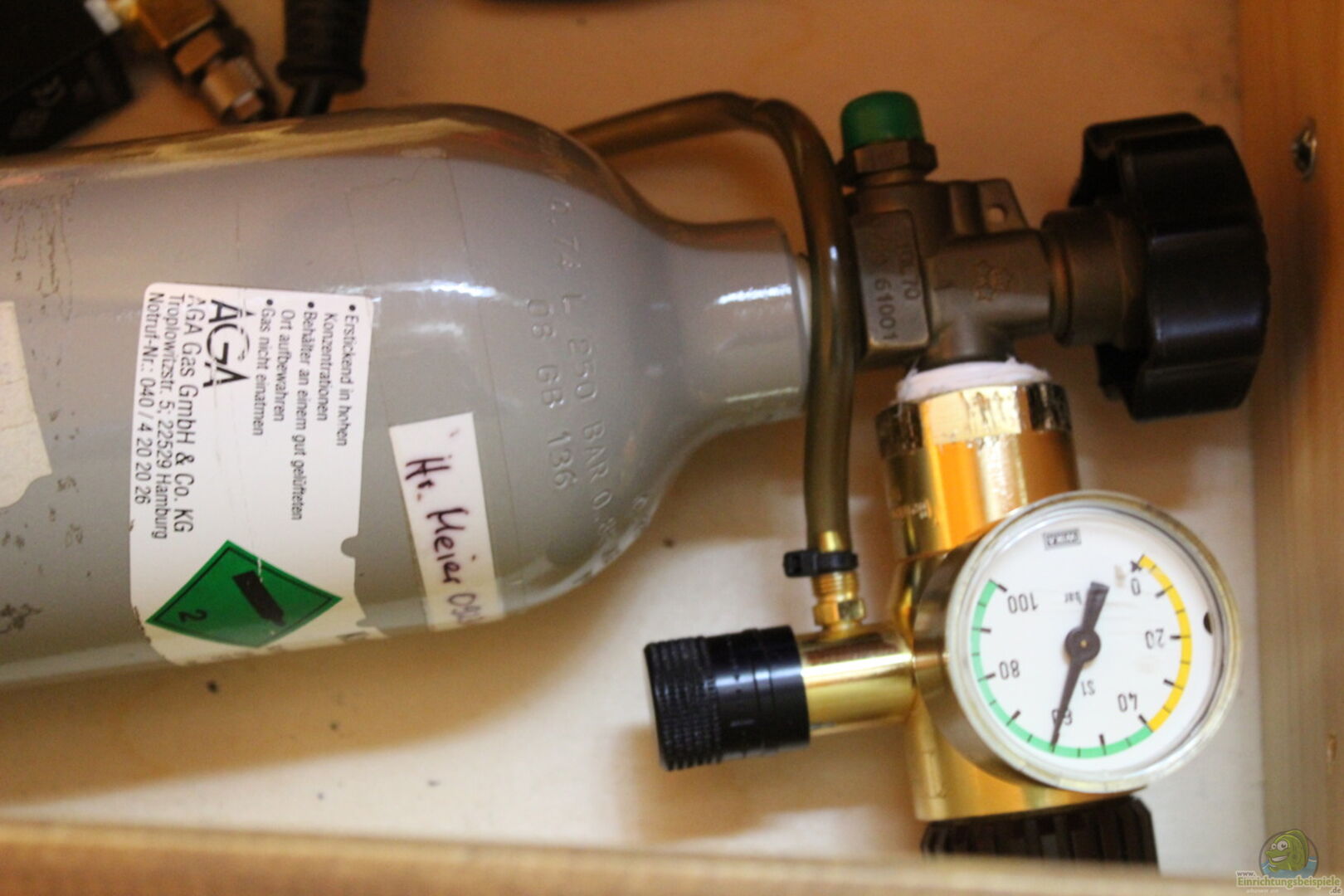 CO2 Anlage mit Druckgasflasche 500g Nachtabschaltung mit Magnetventil Hangon-Mini-Glas-Diffusor Co2 Langzeittester von Dennerle