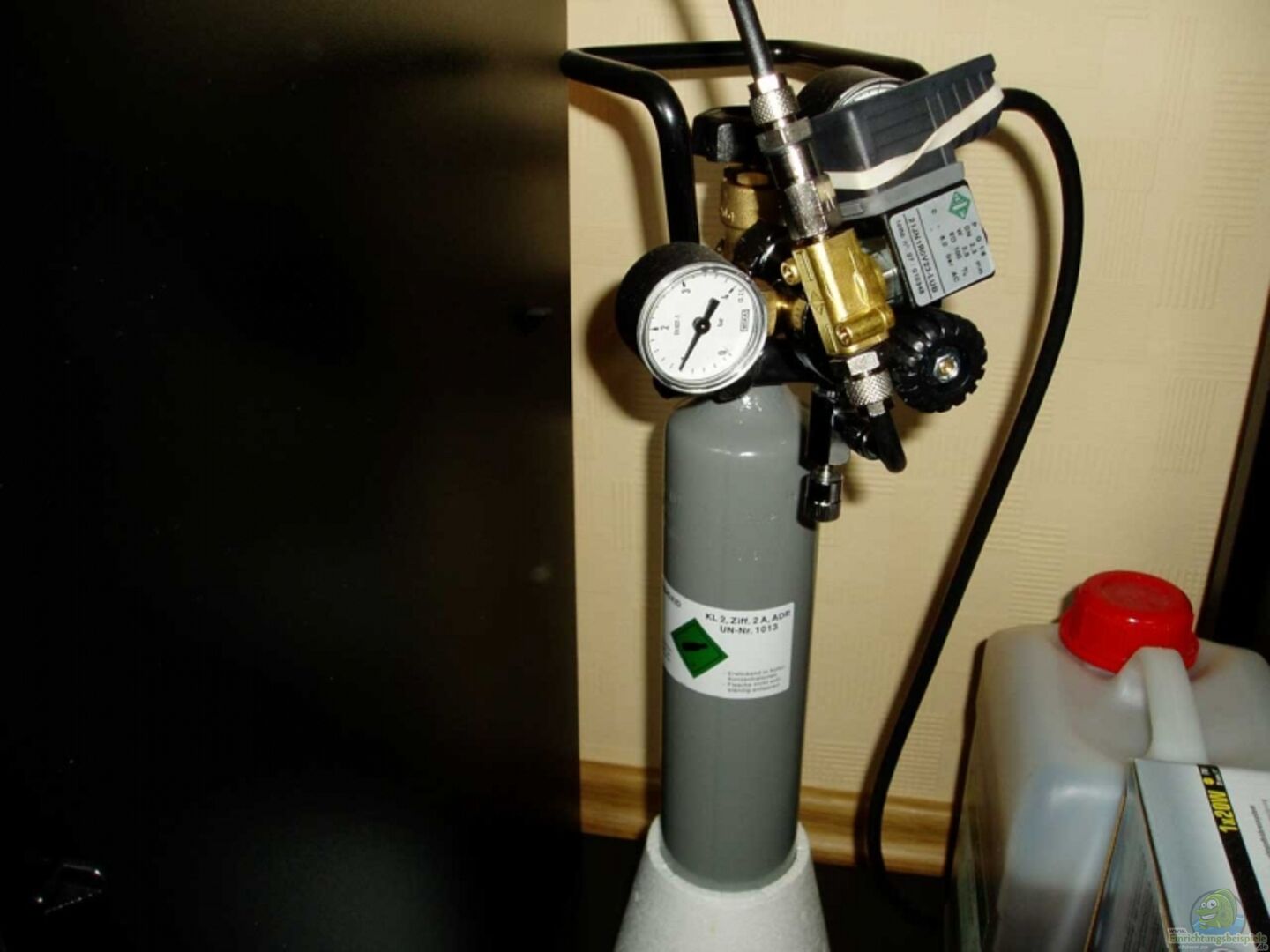 Co2 Anlage mit Nachtabschaltung, Zugabe während der Beleuchtungszeit mit 60 Blasen p/min, eingewaschen wird über einen Flipper 300 Watt Heizer
