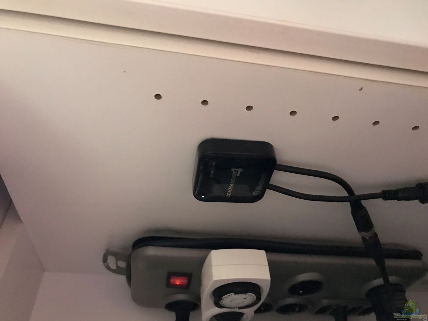 Des weiteren gibt es noch eine kleine Heizung von Aquael im Becken. Eine CO2 Anlage mit Blasenzähler und Nachtabschaltung am Druckminderer und eine Diffusor im Becken. Ein Eheim Skimmer zieht die Oberfläche schön ab, da ich eine Offenes Becken betreibe.