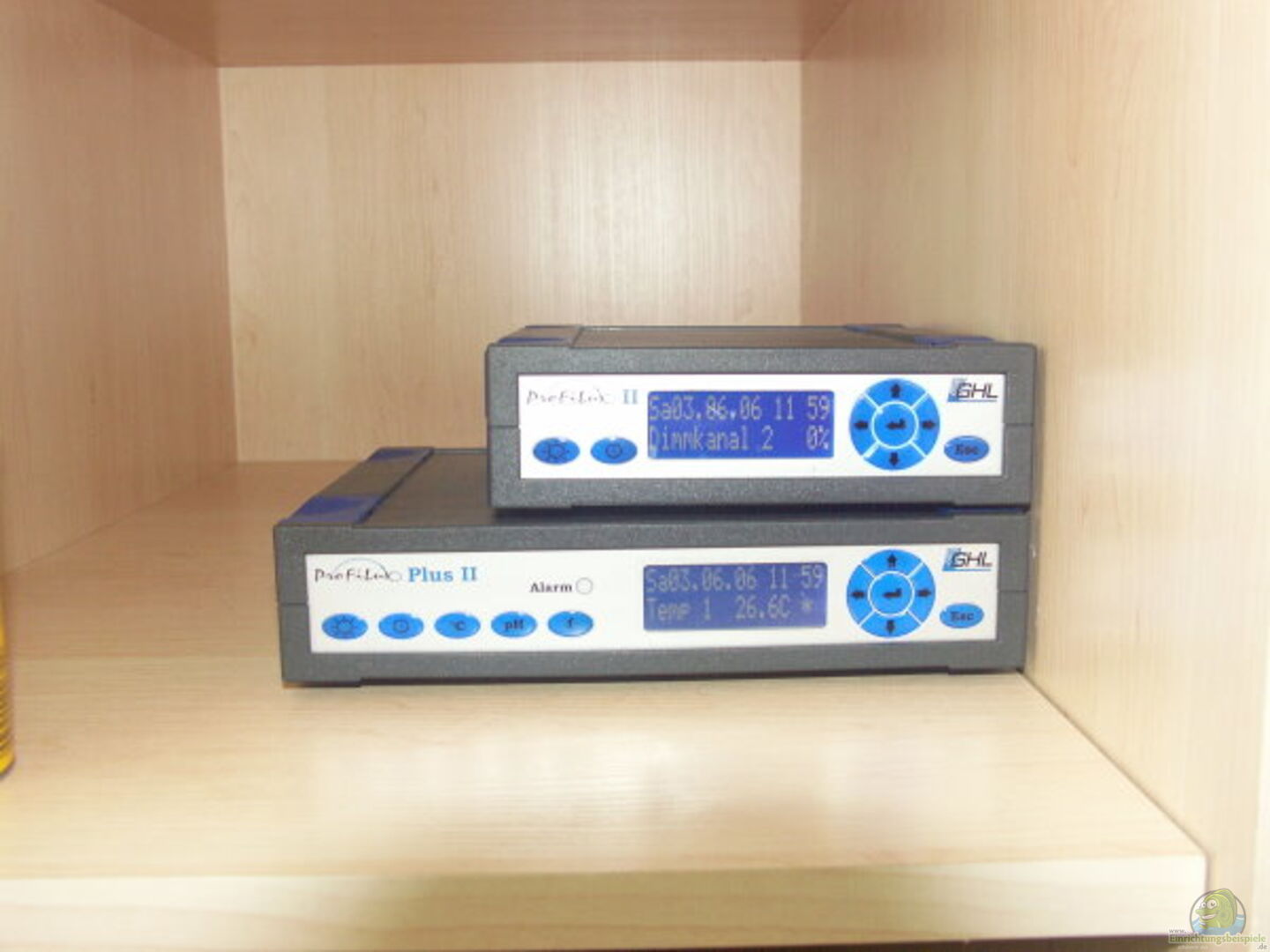 CO2 Anlage mit 2 CO2 Reaktoren 1 Aquariumcomputer GHL PROFI LUX 2 1 Aquariumcomputer GHL PROFI LUX professional schaltbare Steckdose Futterpause Strömungspumpe 4mal amTag je 2min interw.Tunze schaltung über schaltb.Steckdose interw.steuerung Tunze interw.Steuergerät