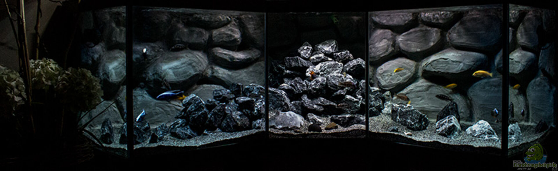 Bei diesem Aquarium handelt es sich um eine Sonderanfertigung (Eckaquarium) mit Wulst und Sto??verklebung aus 12mm Floatglas (Frontscheiben Wei??glas) und einem ma??angefertigtem Unterschrank. Die Schenkellänge beträgt jeweils 150 cm, Breite und Höhe jeweils 60 cm. Die Rückwand ist Marke Eigenbau (die erste von uns selbst gebaute in der Grö??e)! Weiteres siehe Einrichtung. Die Beleuchtung wurde in einem abnehmbaren, selbstgebautem Beleuchtungsregal untergebracht. Dieses Regal [...]